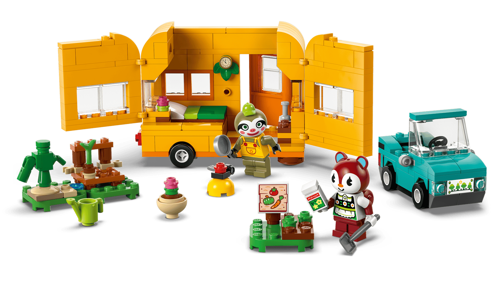 Sættet appellerer også til børn, der elsker legesæt med køretøjer, når de kører legetøjsbilen og campingvognen ind til byen og sætter plantebutikken op. Det indeholder 2 minifigurer – dovendyret Leif og egernet Poppy – og masser af kreativt tilbehør. Børn kan lege, at de sår frø og vander dem med kanden og pumpen, eller de kan lege, at de er Poppy, der køber planter for Bell-penge.