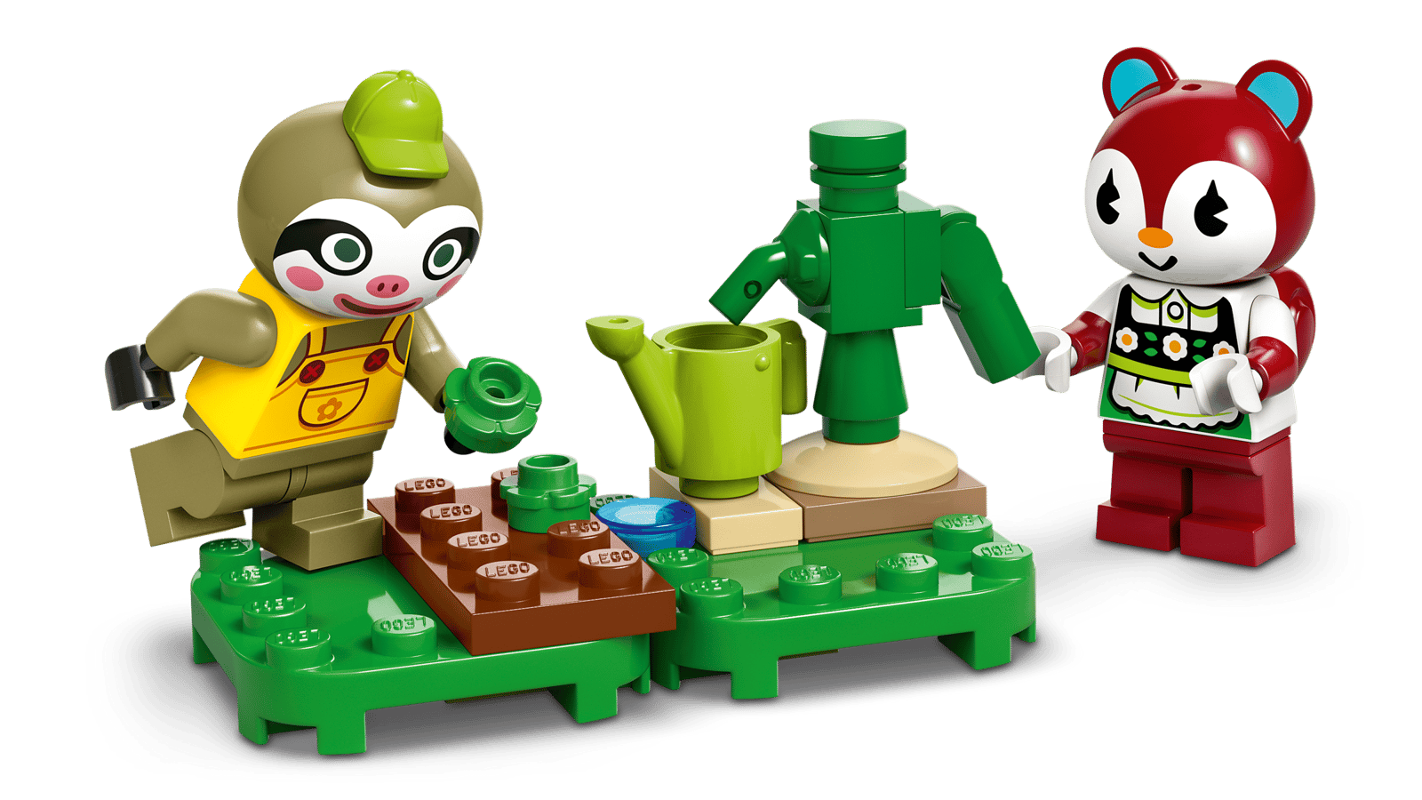 - 2 LEGO® minifigurer fra Animal Crossing™ – Legesættet med havebutik indeholder en minifigur af dovendyret Leif og en minifigur af egernet Poppy fra videospilserien