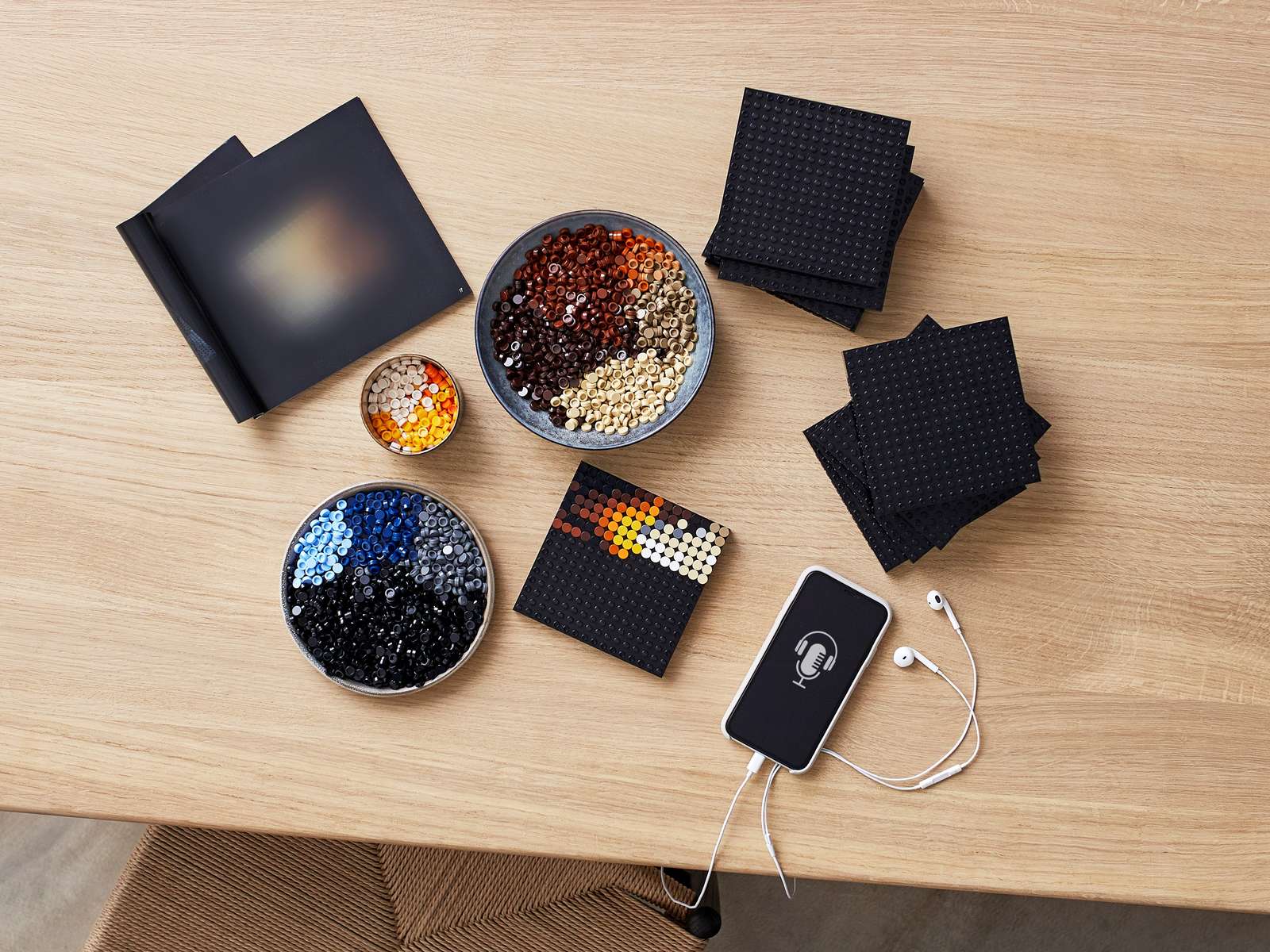 - Med dette sæt kan du fordybe dig i din passion for kunst og design, mens du fremstiller et kreativt kunstværk. Det medfølgende soundtrack giver dig mulighed for at dykke dybere ned i sættet og lære overraskende detaljer, mens du bygger.