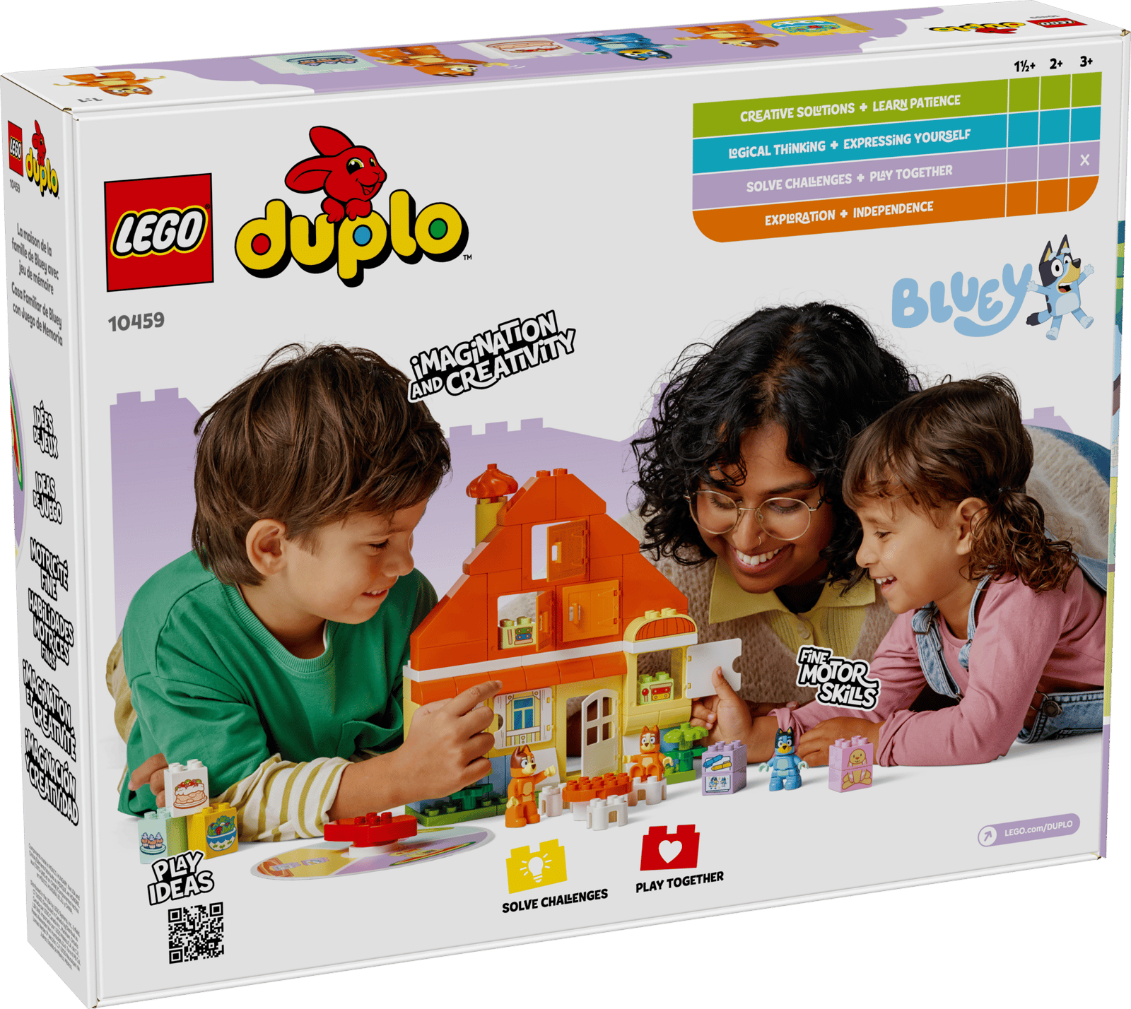 - Giv familiens legetid et sjovt boost med Bluey – Eventyrfyldt LEGO® DUPLO® Bluey-legetøj inspirerer til kreativ rolleleg, som små børn kan relatere til, og understøtter de udviklingsmæssige milepæle, som forældre gerne vil opleve