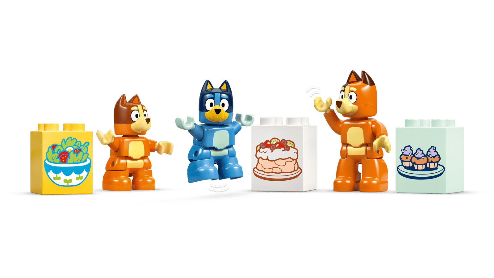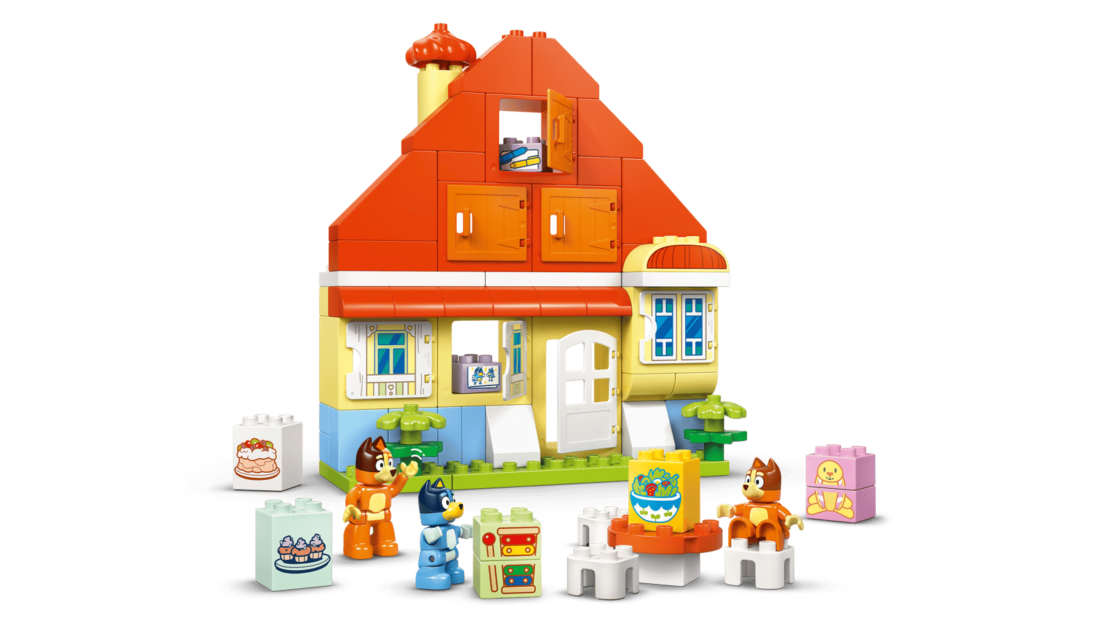 - 3 genkendelige karakterer – Det eventyrfyldte legetøj indeholder figurer af Bluey, Bingo og deres mor fra tv-serien Bluey samt klodser, der repræsenterer velkendte detaljer fra Heeler-huset, bl.a. Bingos kanintøjdyr Floppy