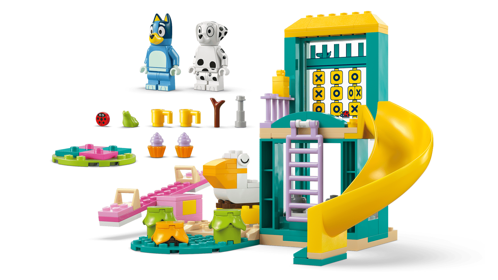 - Interaktivt legetøj til børn fra 4 år – Fans af tv-serien Bluey kan lege med minifigurerne af Bluey og Chloe på en farvestrålende legeplads med vippe, rutsjebane, klatretårn og meget mere