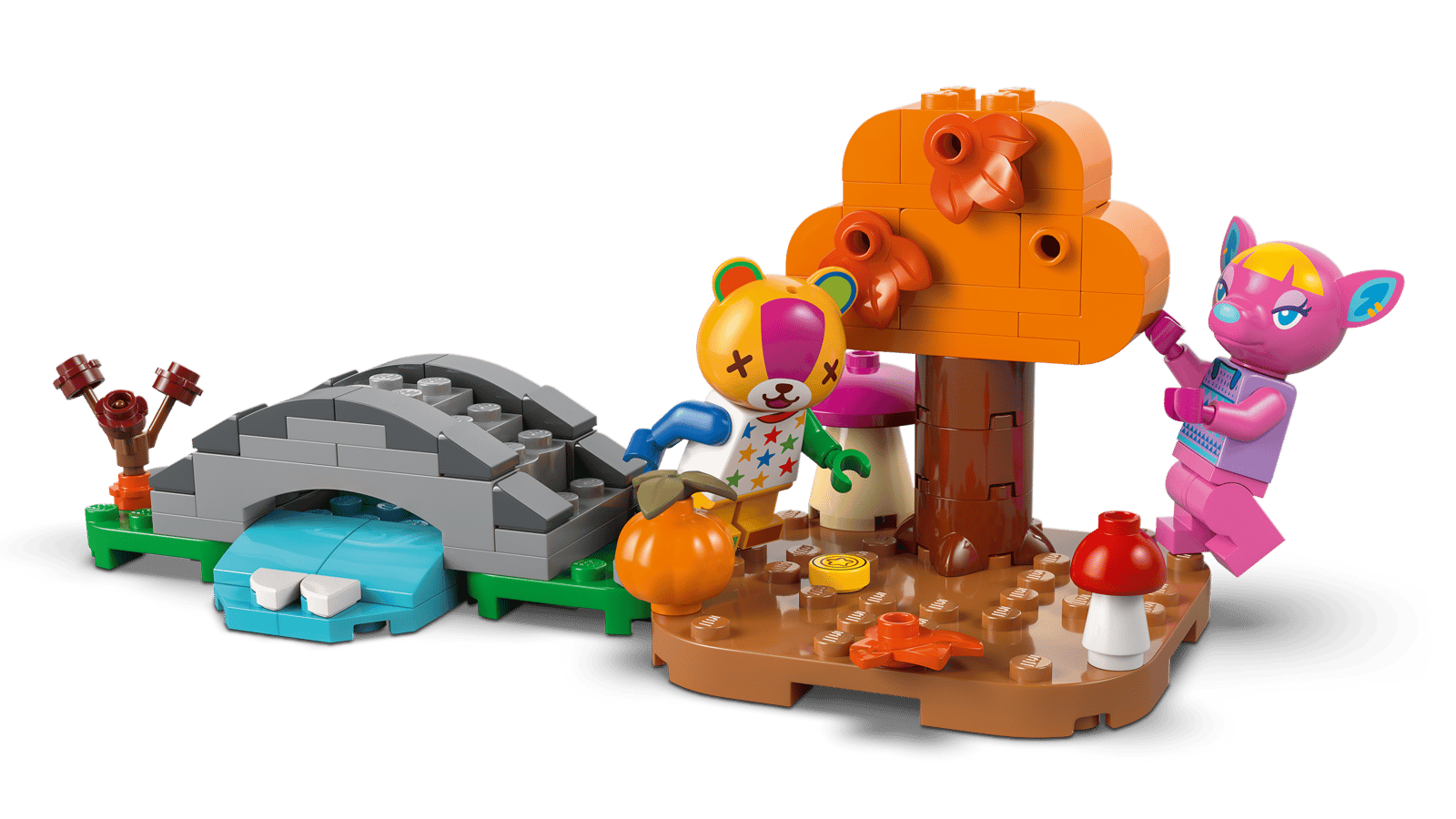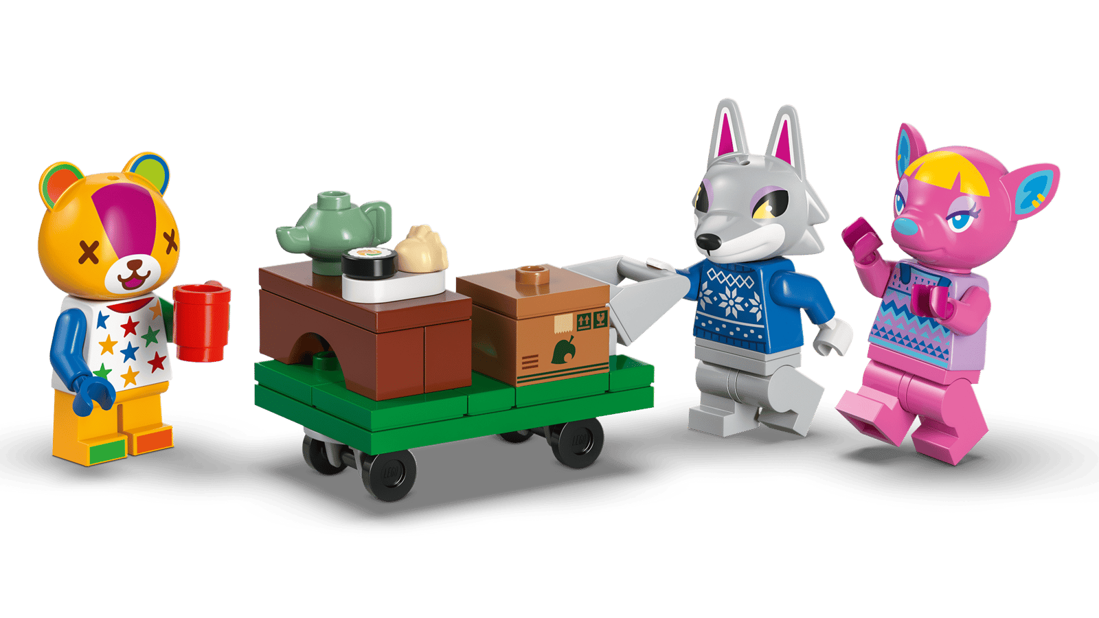 - LEGO® Animal Crossing™ minifigurer – Legesættet indeholder 3 karakterer fra videospilserien: bjørnen Stitches, hjorten Fuchsia og ulven Fang