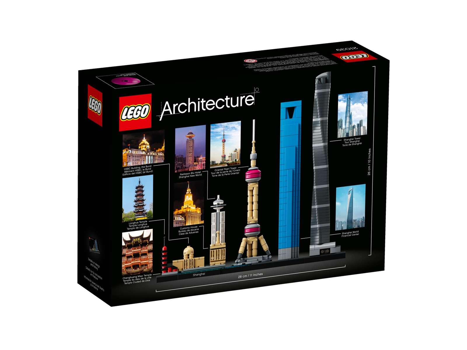 Genskab Shanghai i Kinas blanding af historisk og moderne arkitektur med den realistiske LEGO® Architecture Skyline Collection model 21039. Dette samlerobjekt lavet i LEGO klodser rummer mange af byens ikoniske vartegn, bl.a. Chenghuang Miao-templet, Longhua-templet med pagode, Radisson Blu Hotel, Bund-området, Oriental Pearl Tower, World Financial Center, Shanghai Tower og Huangpu-floden, og rundes naturligvis af med et dekorativt byskilt. LEGO Architecture Skyline Collection er en serie af modeller, der er som skabt til stuen eller kontoret, og som er designet til alle med interesse for rejse, arkitektonisk kultur, historie og design. Disse sæt er lavet med realistiske farver og autentisk indbyrdes størrelsesforhold mellem elementerne.