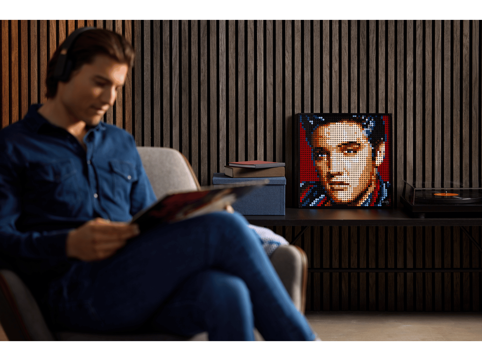 - Giv som gave – Dette LEGO® Art sæt er over 40 cm på begge led og kan udstilles på en væg eller hylde. Det kan også gives som en gave til alle, der elsker musik eller Elvis Presley