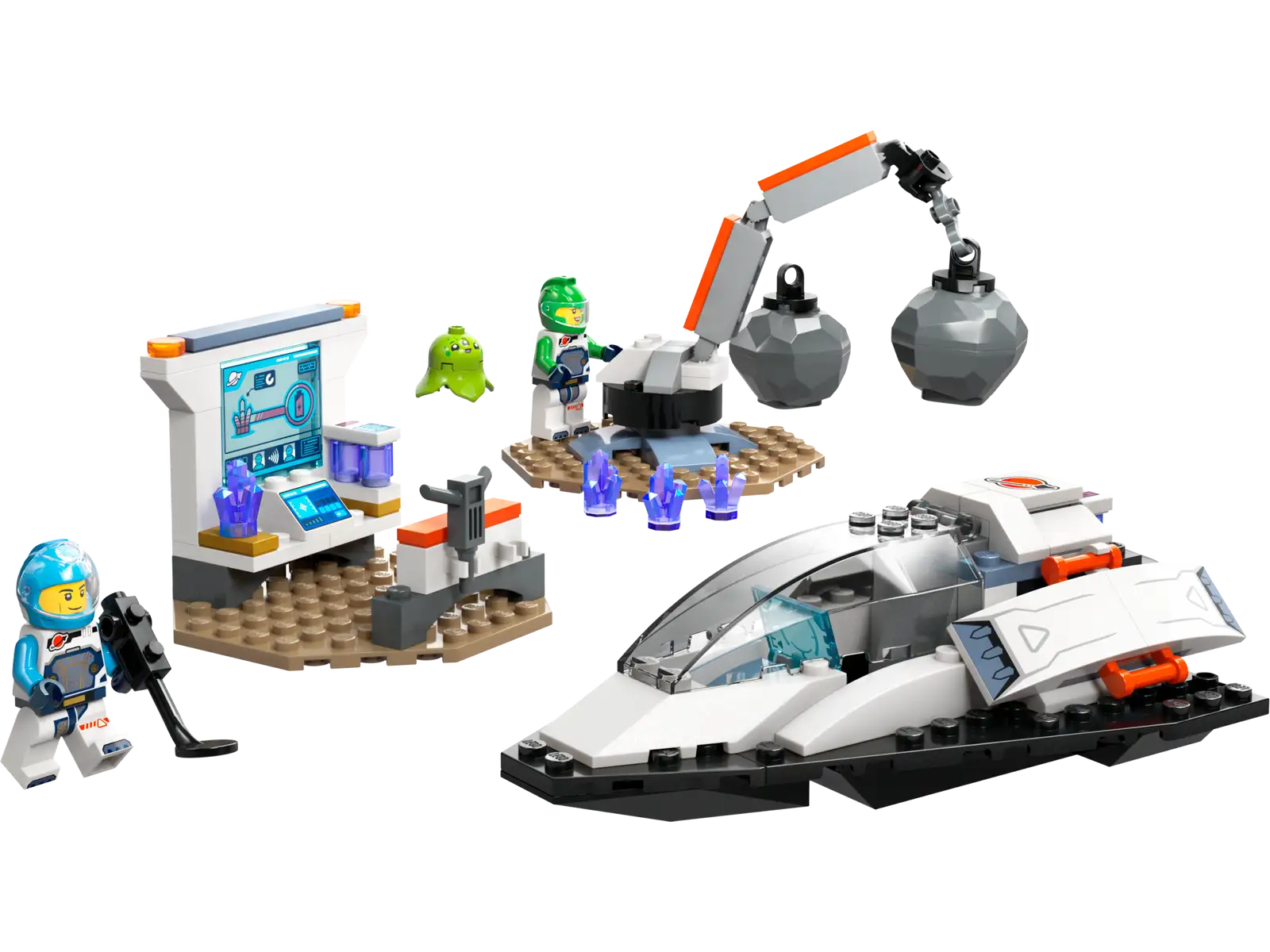 - Hvad er der i æsken? – Dette rumlegetøj indeholder alt, hvad børn skal bruge til at bygge et rumskib, en kran, et laboratorium og udgravningsscener, en meteorit med legetøjs-energikrystaller, 2 minifigurer af rumbesætningen og en rumvæsenfigur