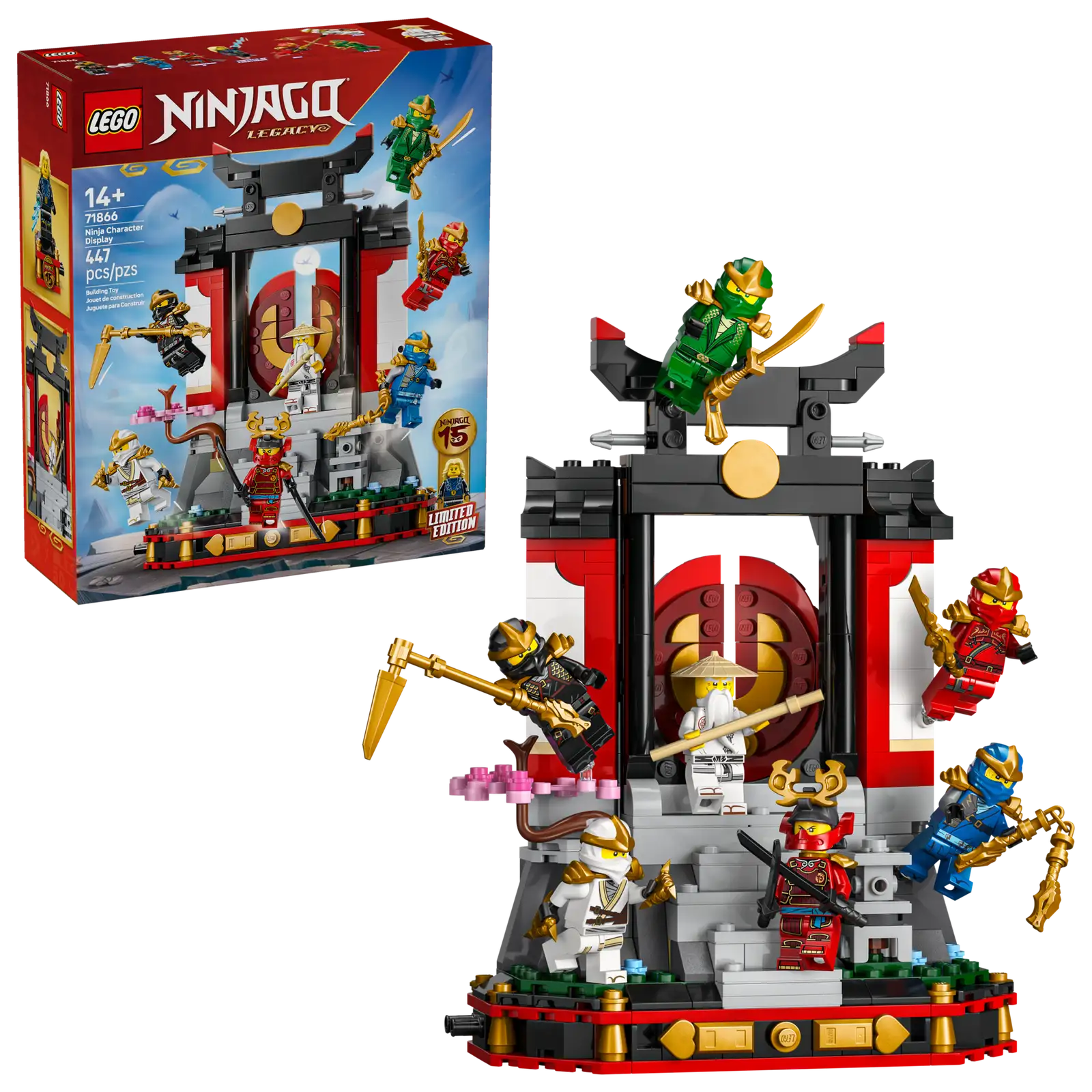 - UDSTILLINGSSTAND MED LEGETØJSNINJAER – Byggesættet Ninjakarakterer – 15-års jubilæum (71866) er et sæt til drenge, piger og nostalgiske fans fra 14 år for at fejre 15 år med LEGO® NINJAGO® tv-serien