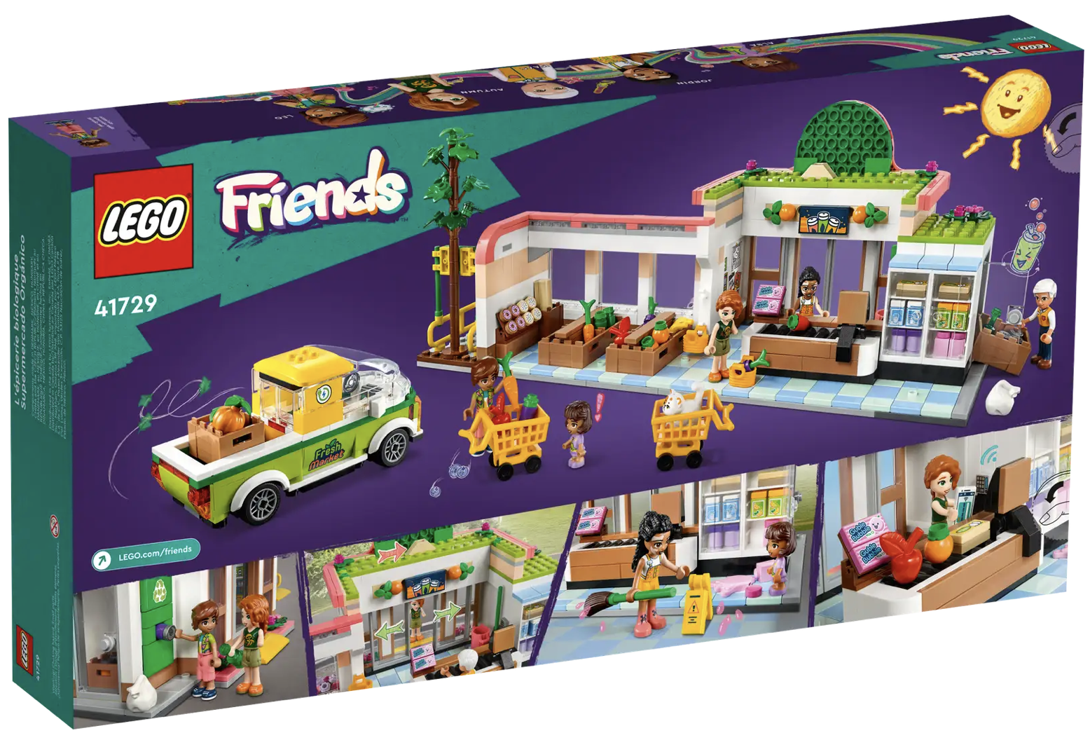 Inspirer til kreativ rolleleg i supermarkedet for børn fra 8 år med LEGO® Friends sættet Økologisk købmandsbutik (41729). Det er fyldt med tilbehør til dagligvarebutikken, som børn kan bruge til at udforske figurernes interesser. Autumn brænder for at hjælpe planeten, så hun elsker at besøge den økologiske shop. Her møder hun sin ven Leo, der er vild med at lave mad og afprøve nye opskrifter. Børn vil nyde at finde funktioner fra virkelige forretninger, såsom skydedøre, indkøbsvogne, genbrugsbeholder og varevogn. Sættet indeholder 4 minidukker samt figurer af lillesøsteren Alba og katten Churro.