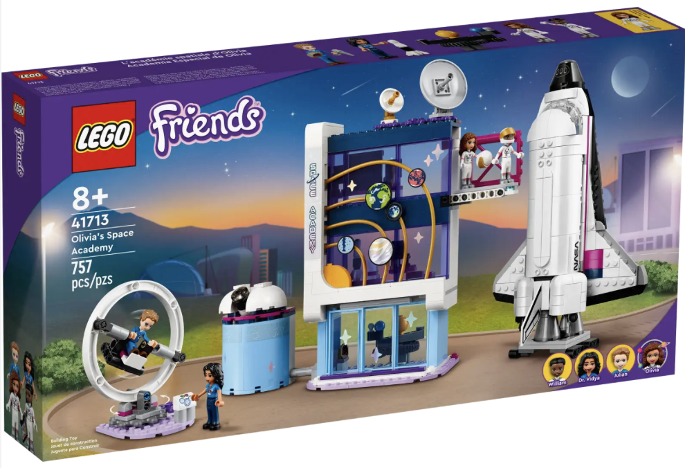 Lad fremtidige astronauters kærlighed til rummet nå stratosfæren med Olivias rumakademi (41713). Børn fra 8 år kan forberede sig på rumeventyr med LEGO® Friends figurer. Sættet er fyldt med autentiske detaljer, fra raketmotorerne på rumfærgen til virtual reality-simulatoren. Ikke kun leg, men også sjov læring – alle billeder i akademiet er videnskabeligt korrekte, og klasseværelsets whiteboard viser ægte rumforsknings-ligninger.