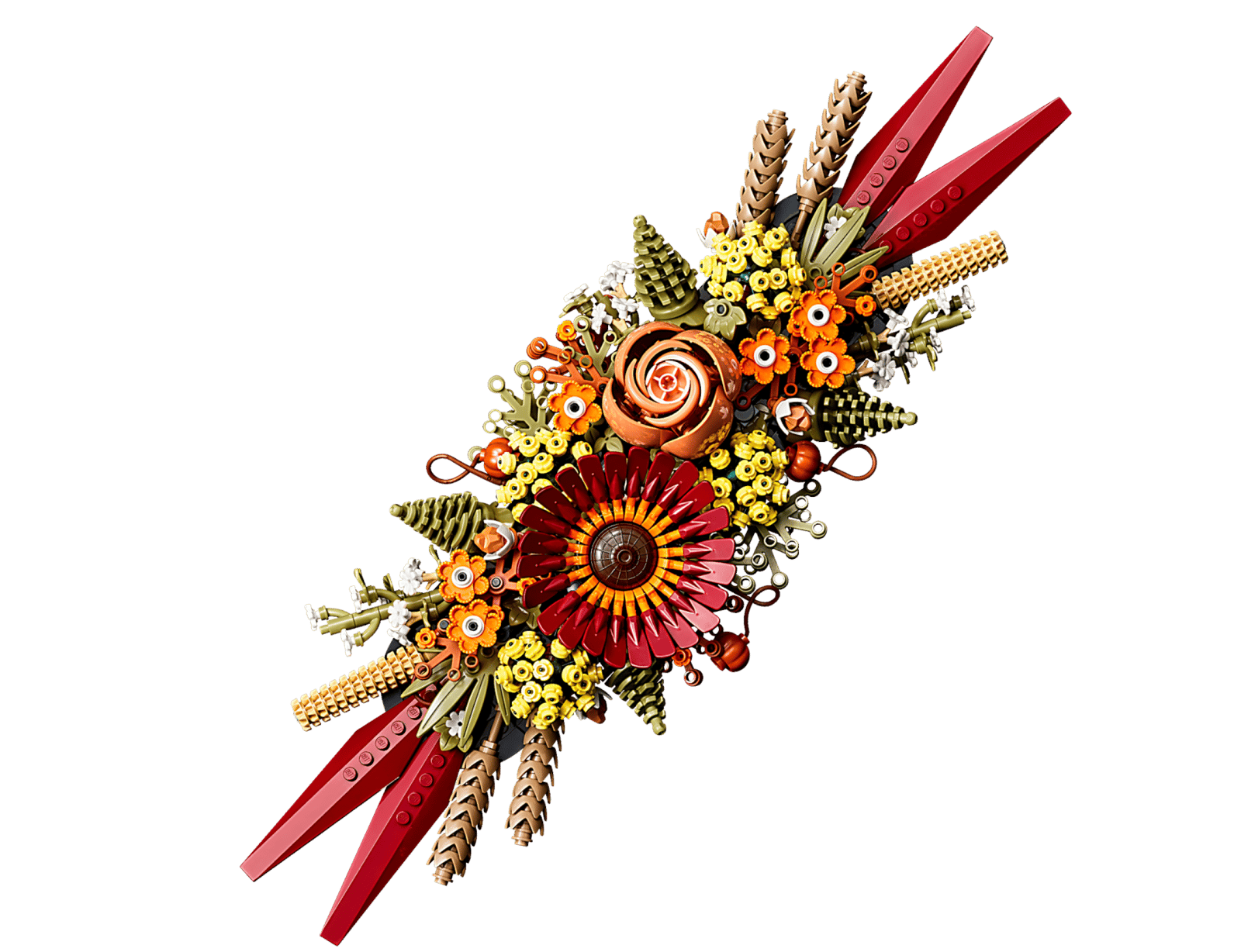 - Inspireret af efteråret – Dette byggesæt er fuldt af flotte blomster inspireret af efterårets farver og har en gerbera og en rose som midtpunkt