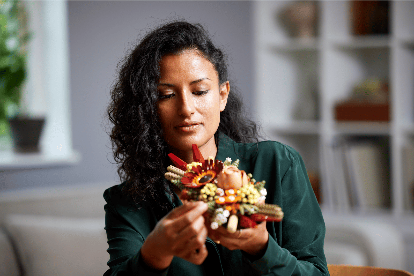 - En gave til blomsterelskere – Blomsterhandlere og blomsterentusiaster kan bygge en LEGO® Dekoration med tørrede blomster