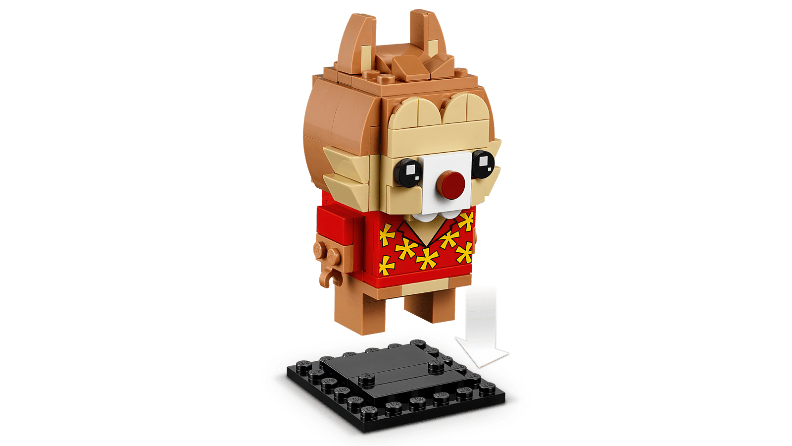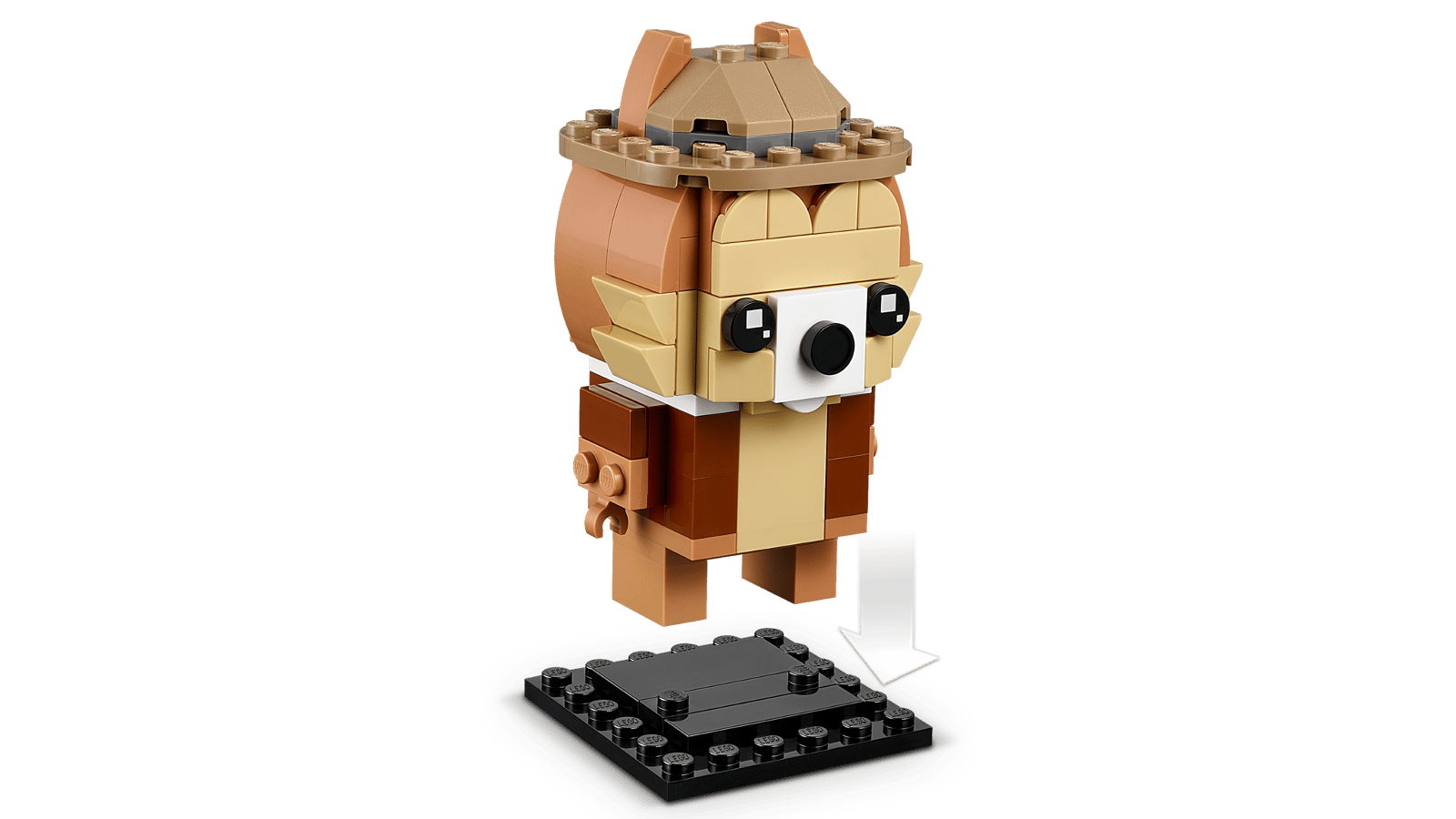 - Gaveidé – Disse kreative LEGO® figurer, der kan bygges, er over 9 cm høje, 4 cm brede og 4 cm dybe. Forær sættet til en fan af tegnefilm eller Disneys Chip & Chap som en overraskelse