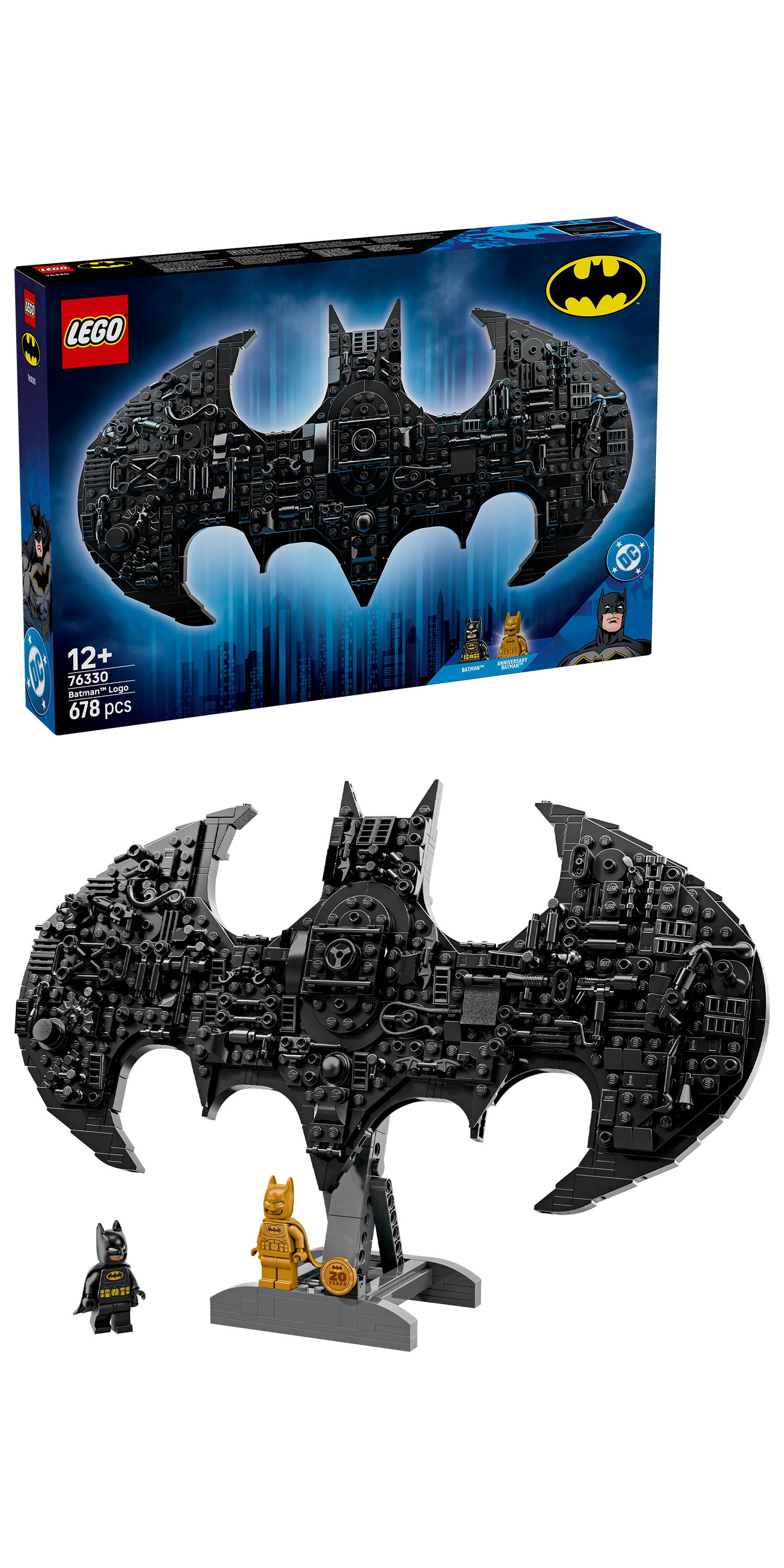 - STØRRELSE – Logo-byggesættet LEGO® DC Batman™ med 678 elementer omfatter en model, der er over 23 cm høj, 36 cm bred og 9 cm dyb