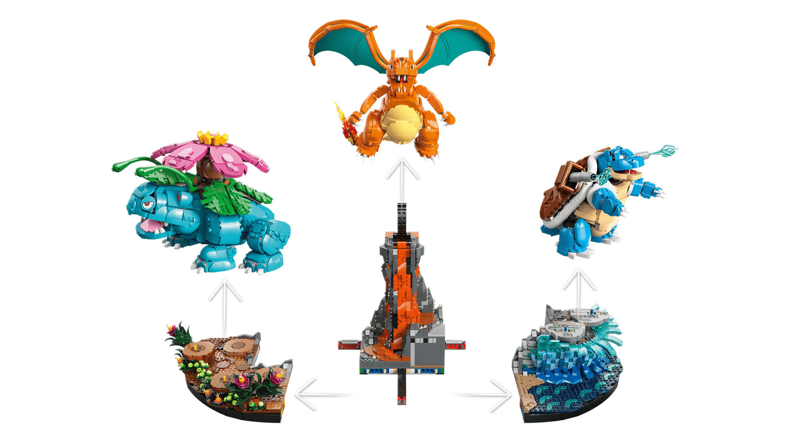 - STØRRELSE – Pokémon-byggesættet med 6.838 elementer omfatter samlerfigurer af Venusaur, Charizard og Blastoise, der er henholdsvis 23 cm, 20 cm og 18 cm høje