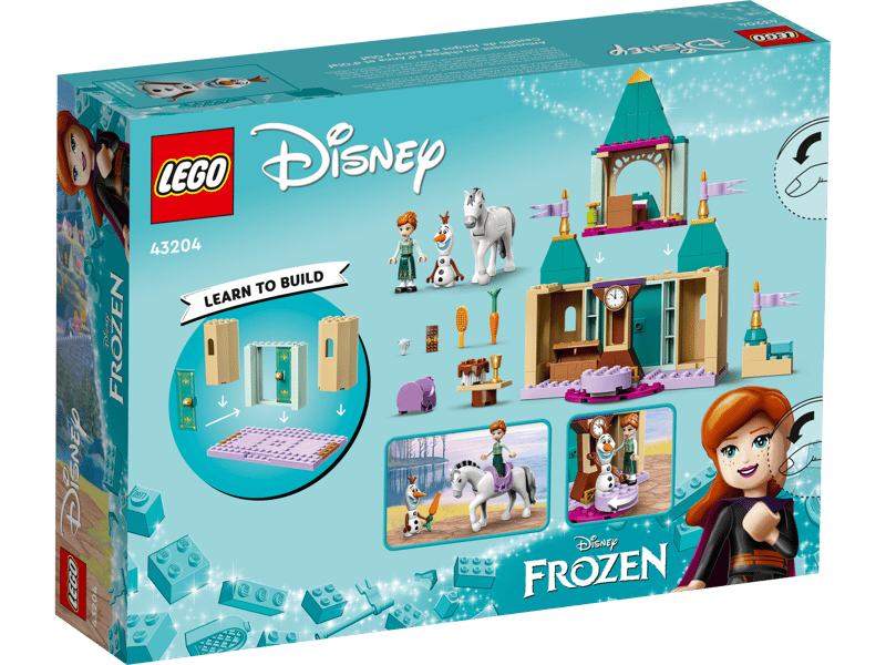 - Hurtigt sjov – Dette sæt med 108 elementer indeholder en slotsmodel, minidukkefigur af Disneys Anna samt LEGO® figurer af Olaf og Kjekk. Hver pose med klodser indeholder en figur, så børn hurtigt kan komme i gang med at lege