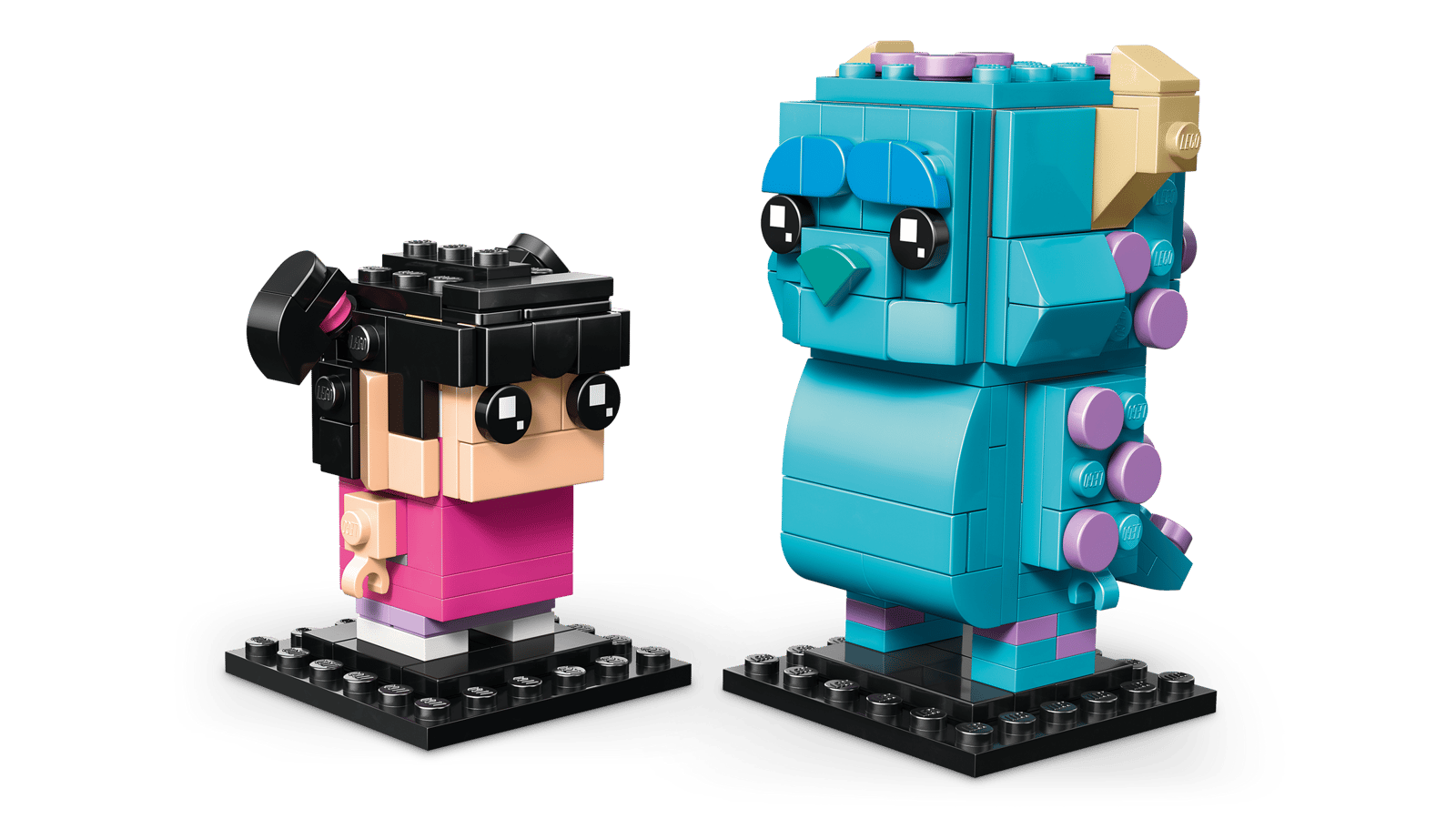 - MONSTERS, INC.-BYGGELEGETØJ – Giv hjemmet et strejf af filmmagi med byggesættet Figurer af Sulley, Mike og Bøh (40861) til børn, inspireret af Disney- og Pixar-filmhittet