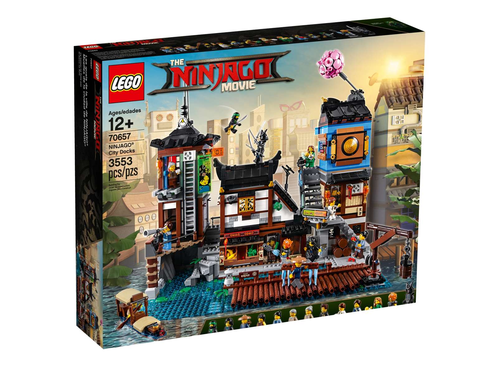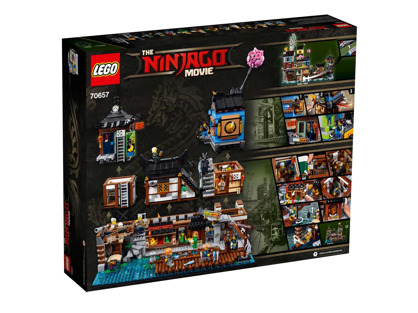 Hav det sjovt med Lloyd, Cole og vennerne i LEGO® NINJAGO FILMEN sættet 70657 NINJAGO® City havn, og forsvar jer mod Garmadons angreb! Dette yderst detaljerede sæt indeholder en havn med fungerende kran og båd, og 2 etager med steder fra gamle dage, bl.a. en købmandsbutik med vipbar madudstilling og drejeligt rotisseri, hus med kortrum og køkken/soveværelse, billedhuggerværksted samt en dojo. Oplev det moderne liv i NINJAGO City på gaden The Street med tesalon og arkade med udskiftelige reklameskilte, arkadespil, der kan bygges, fungerende salgsautomat og en "griseballon", der kan bygges og er fastgjort til taget. Sættet indeholder også 13 LEGO NINJAGO minifigurer.