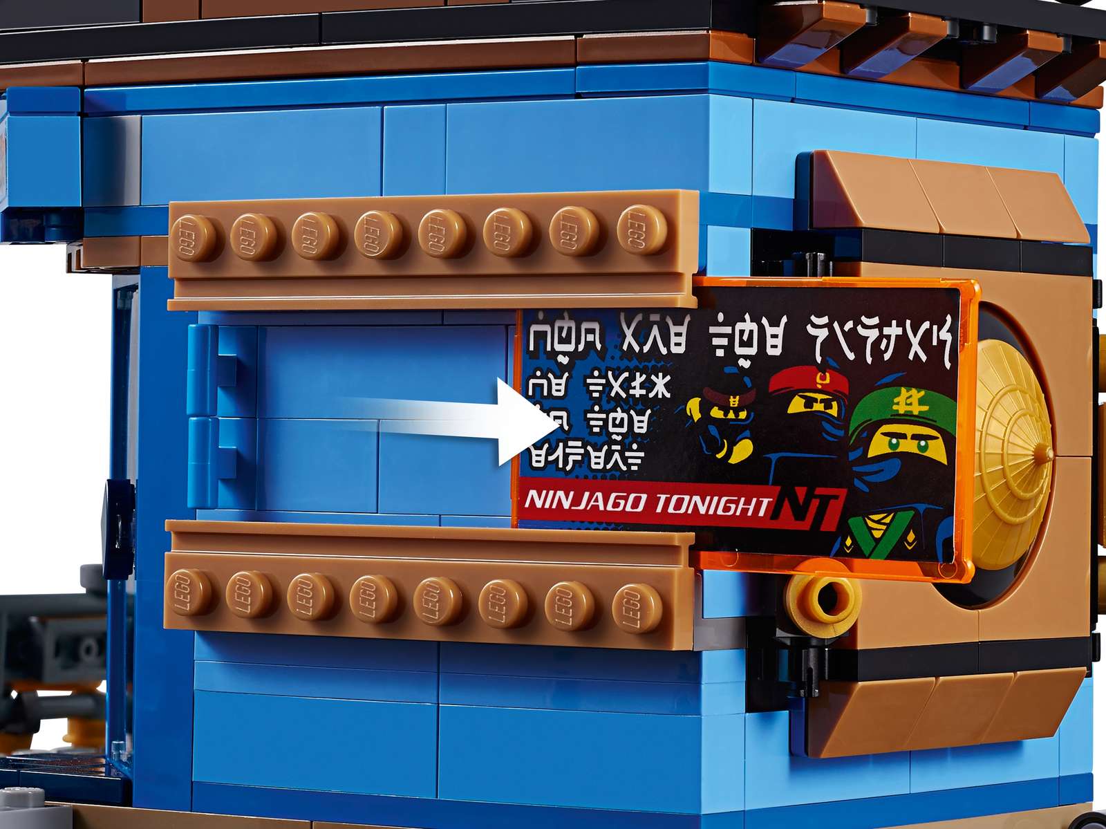 - Gaden The Street indeholder den opdagelsesrejsende og Mystakes tesalon, arkade med reklameskilte og et avisstativ med 3 NINJAGO® News-elementer.