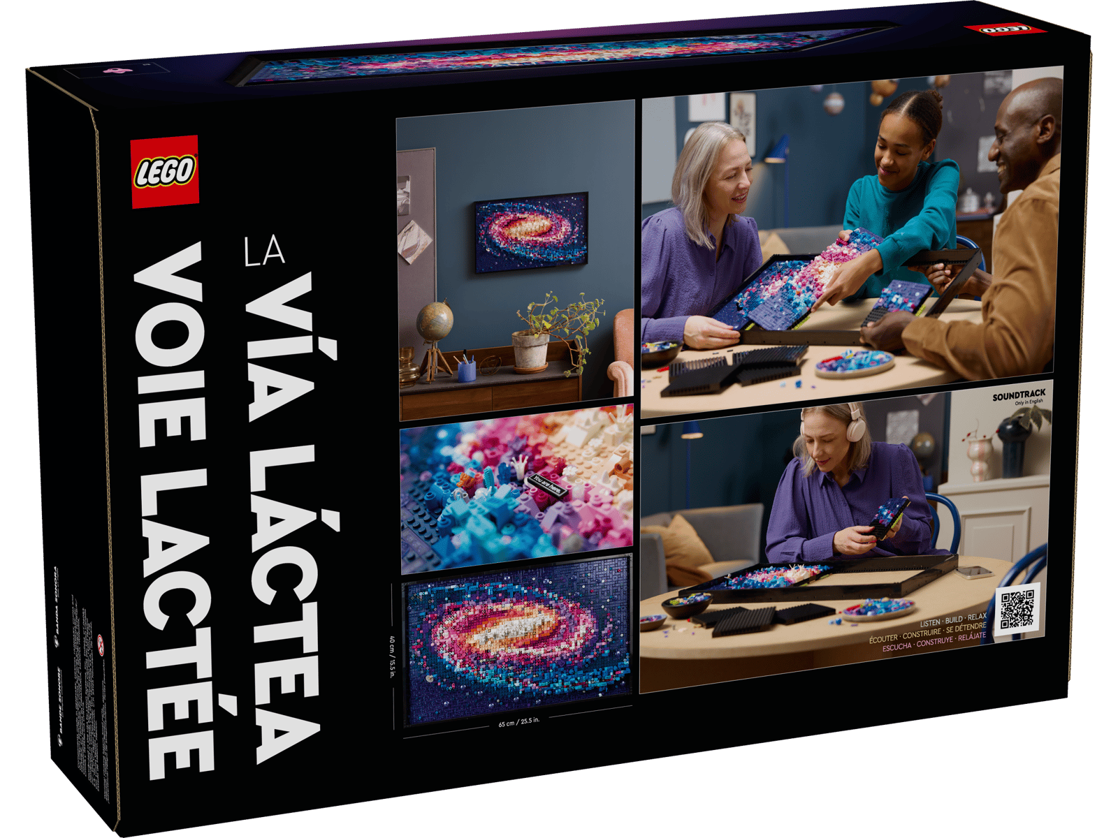 Denne gave med astronomi- og rumtema er bygget på 5 forskellige paneler, som hvert har sit eget hæfte med byggevejledning, så familie, venner og andre kan bygge sammen og få en sjov og social oplevelse. Mens de bygger, kan de scanne hvert hæftes QR-kode for at lære mere om Mælkevejen gennem sættets særligt udvalgte soundtrack.