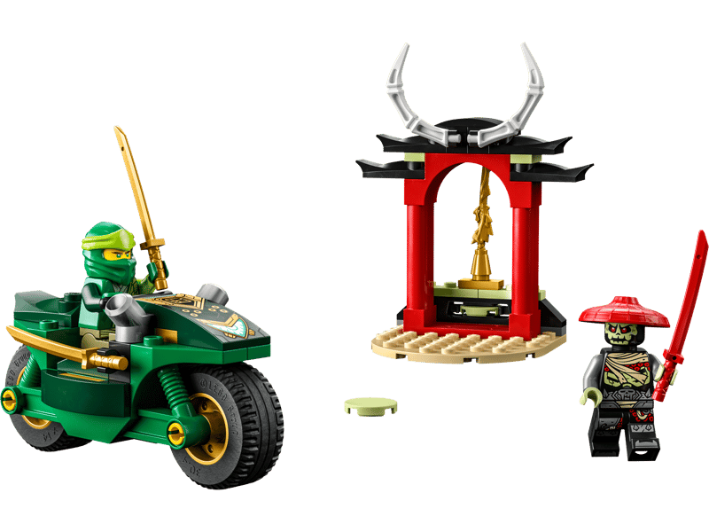 - Actionfyldt ninja-legesæt – Efter en berigende byggeoplevelse kan børn bruge fantasien til at udspille historier mellem Lloyd på sin motorcykel og hans fjende Knoglevogter