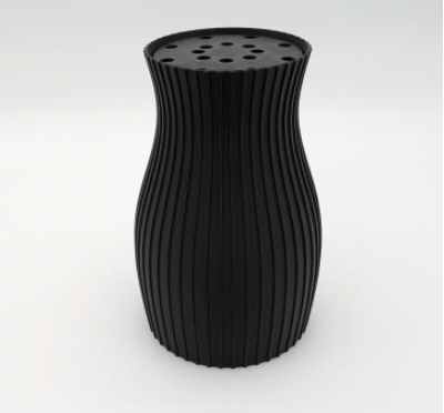 Flot 3D Printet vase i Matte Charcoal designet med indsats lavet til LEGO® blomster.