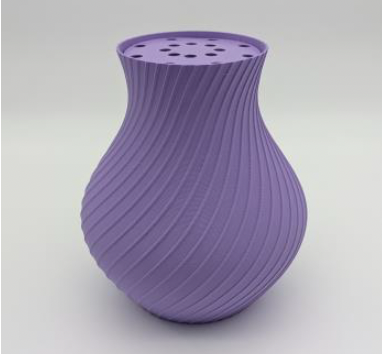 Flot 3D Printet vase i Matte Lilac Purple designet med indsats lavet til LEGO® blomster.