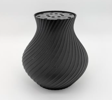 Flot 3D Printet vase i Matte Charcoal designet med indsats lavet til LEGO® blomster.