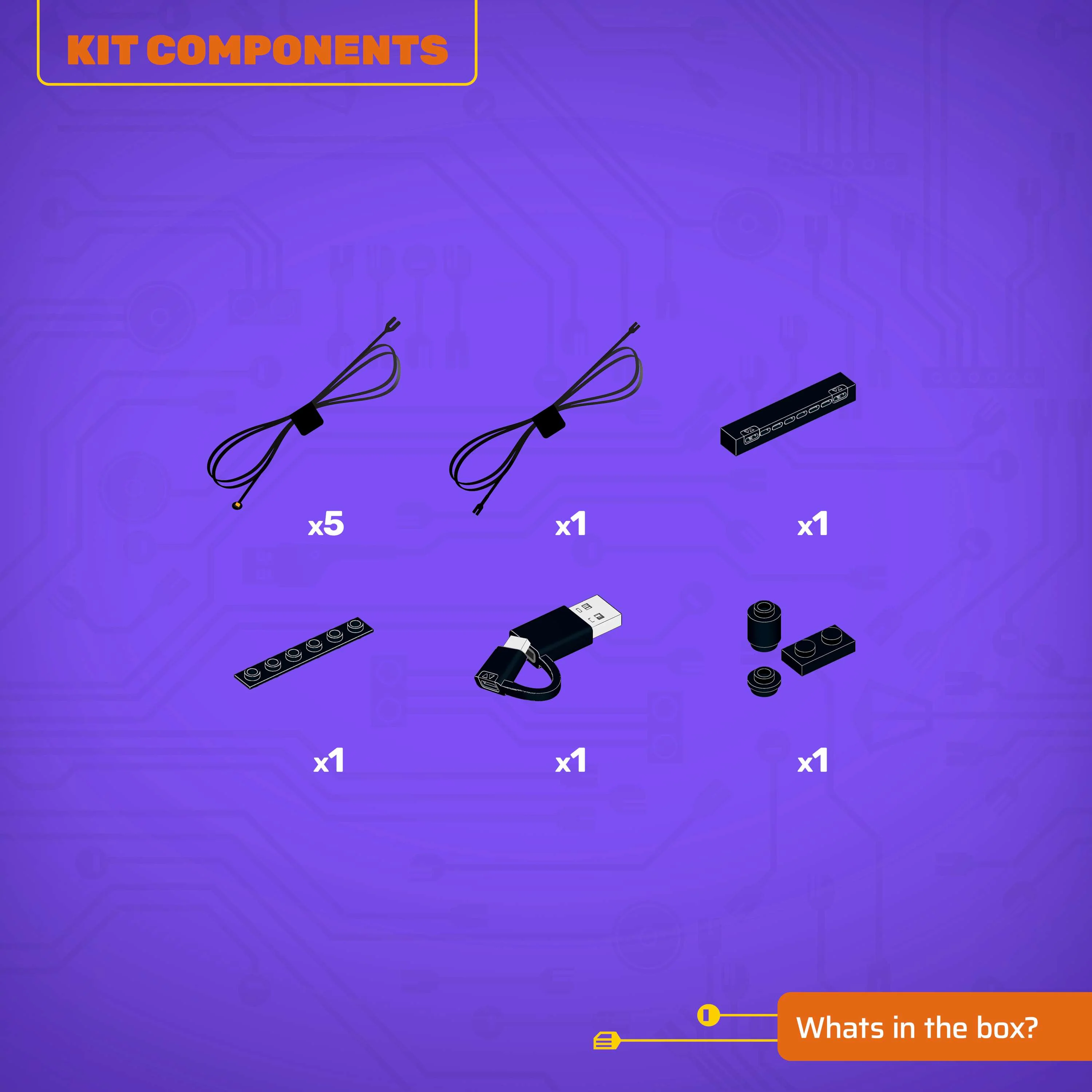 - All component casing and housing has been designed to connect seamlessly onto the LEGO stud system, with LEGO dimensional parts.