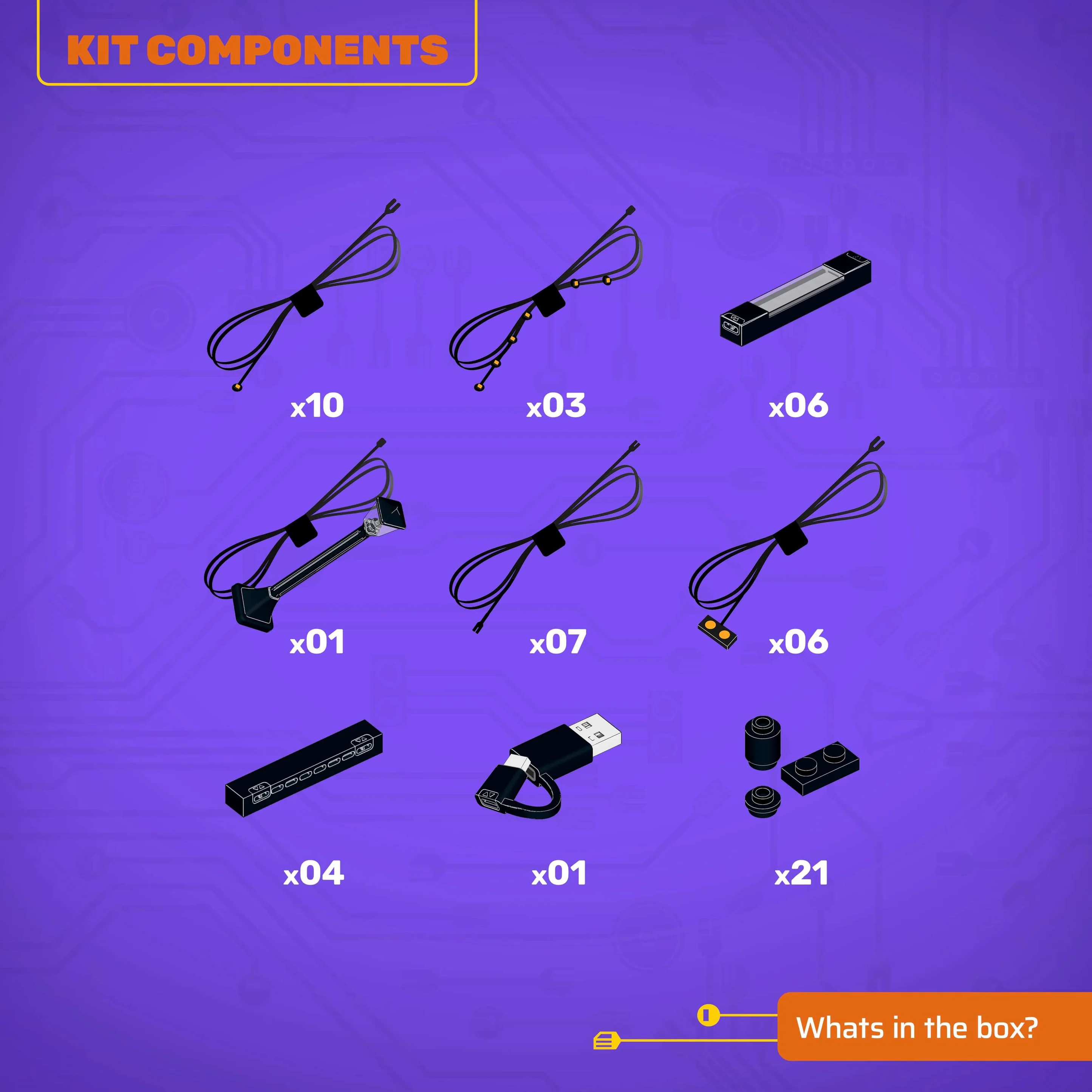 - All component casing and housing has been designed to connect seamlessly onto the LEGO stud system, with LEGO dimensional parts.