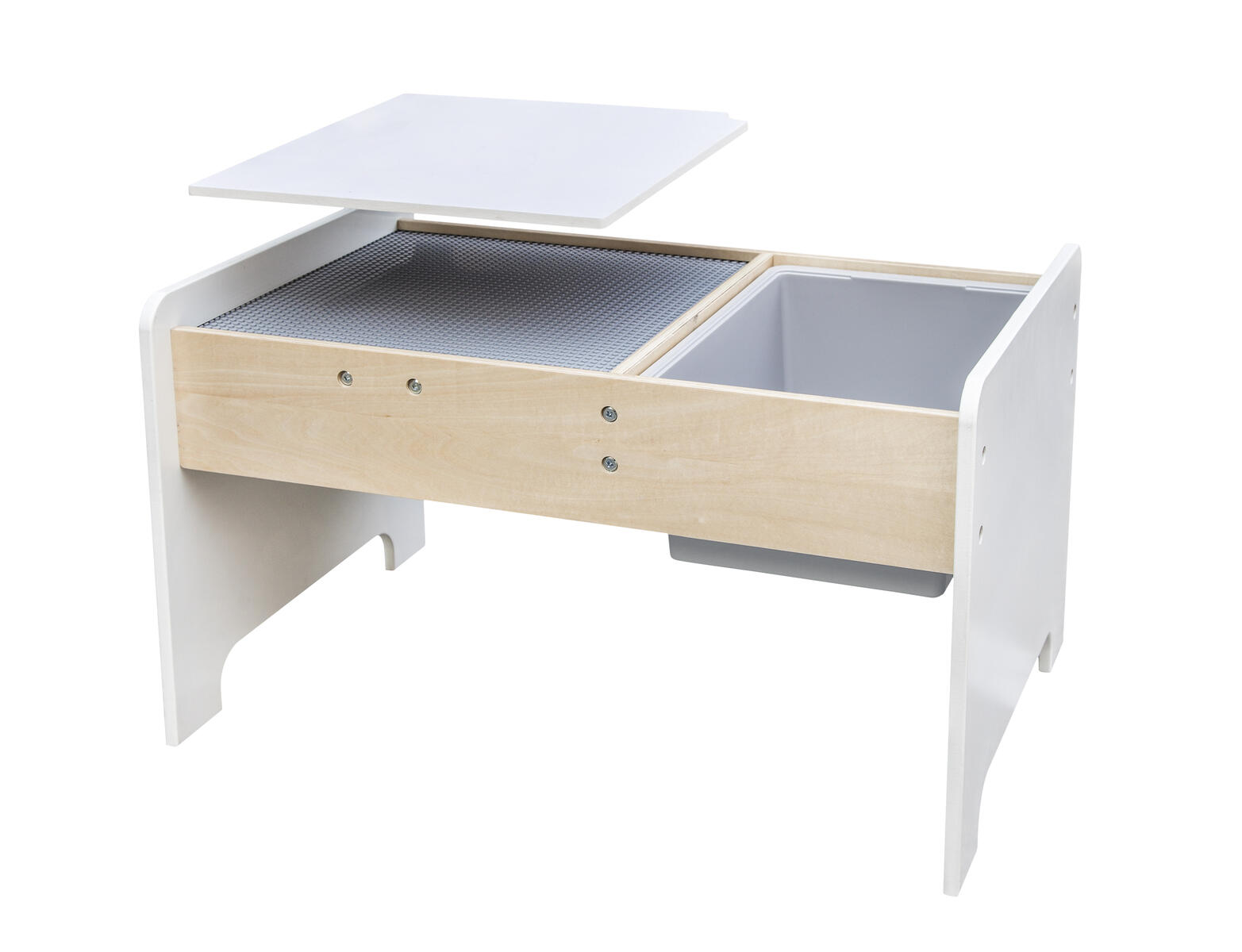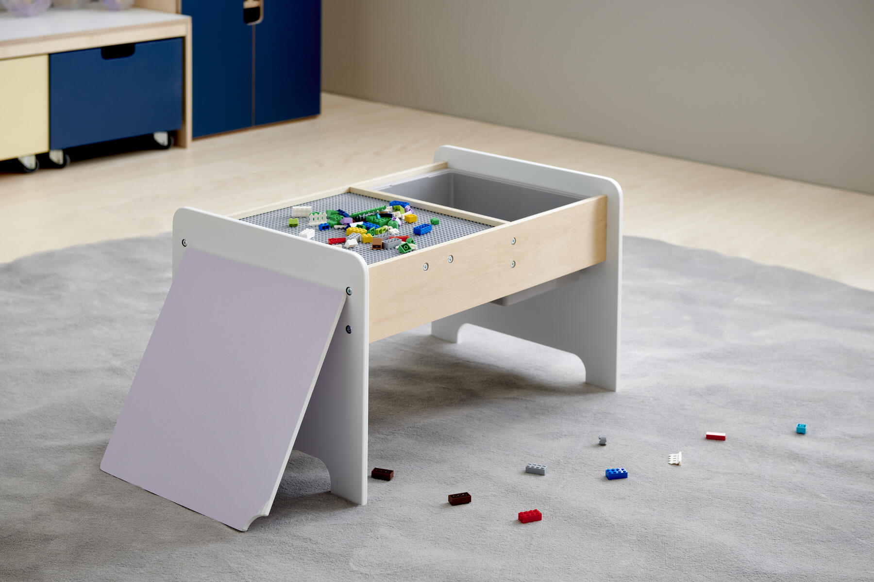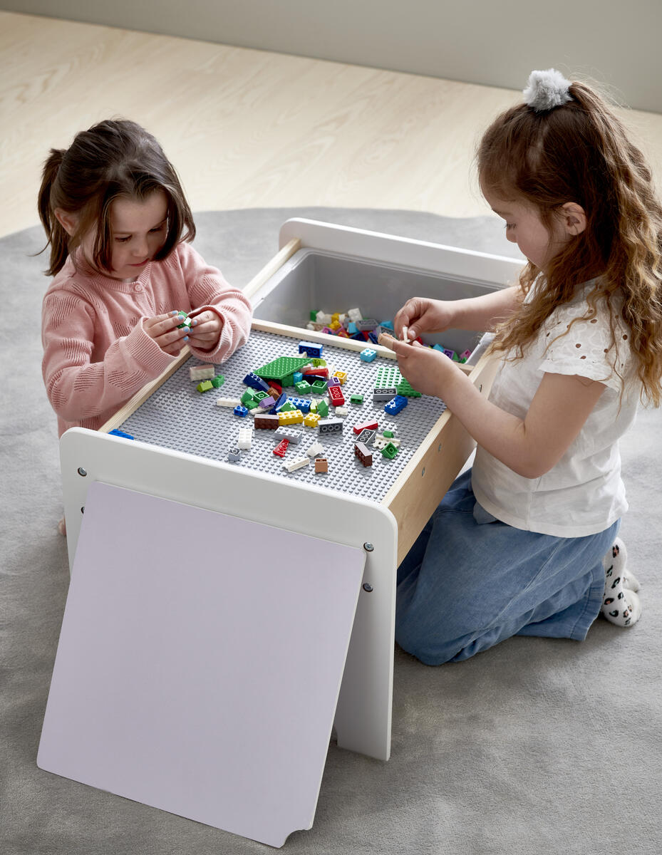 Et praktisk legebord i FSC-mærket træ med indbygget LEGO® PLade – perfekt til LEGO®-konstruktioner. Bordet har en opbevaringskasse, der nemt kan tages ud, samt en ekstra plade, der kan lægges over LEGO®-pladen, når bordet bruges til anden kreativ leg. Understellets mål: L45 x B67 x H39 cm. Leveres usamlet. PVC-fri. Fra 3 år.