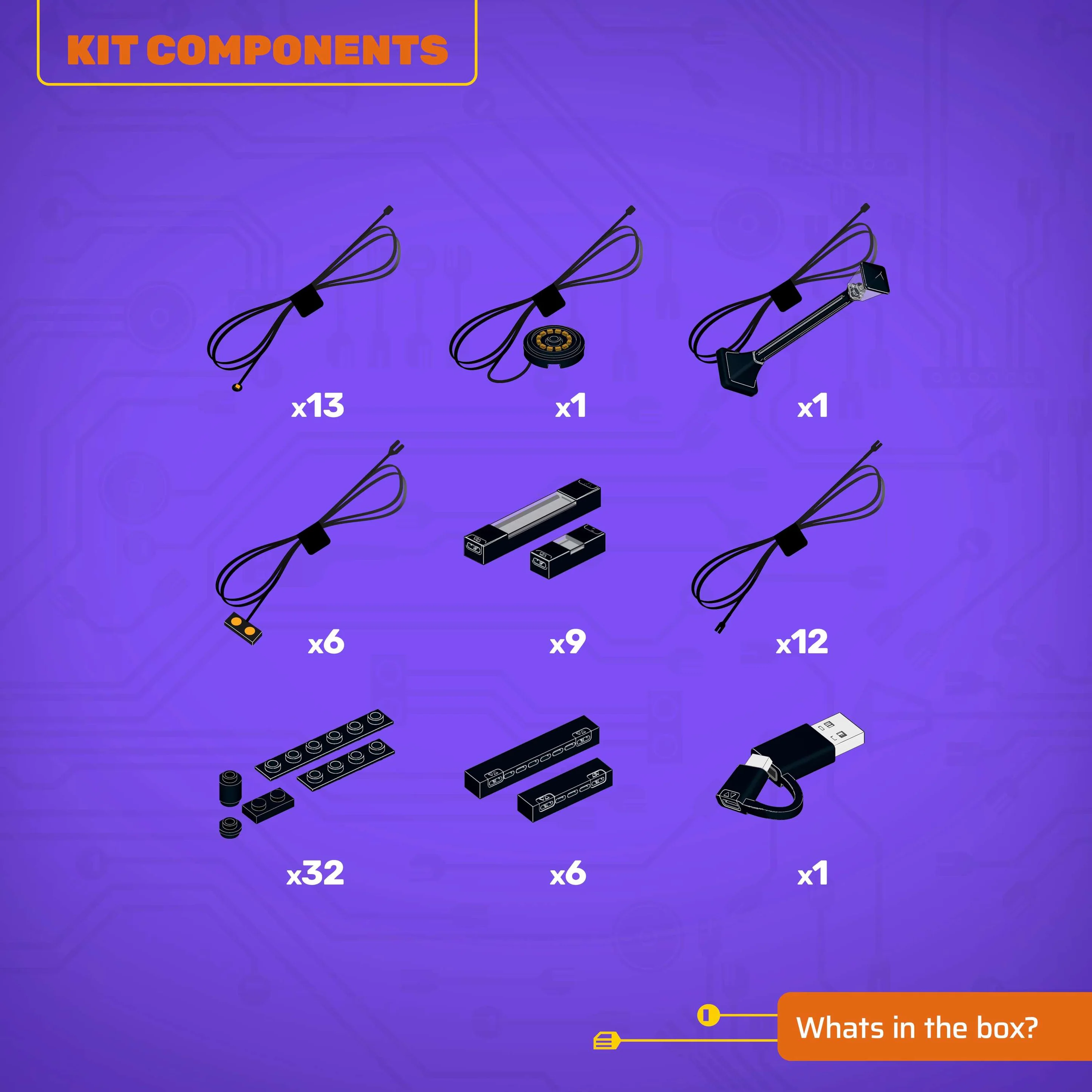 - All component casing and housing has been designed to connect seamlessly onto the LEGO stud system, with LEGO dimensional parts.