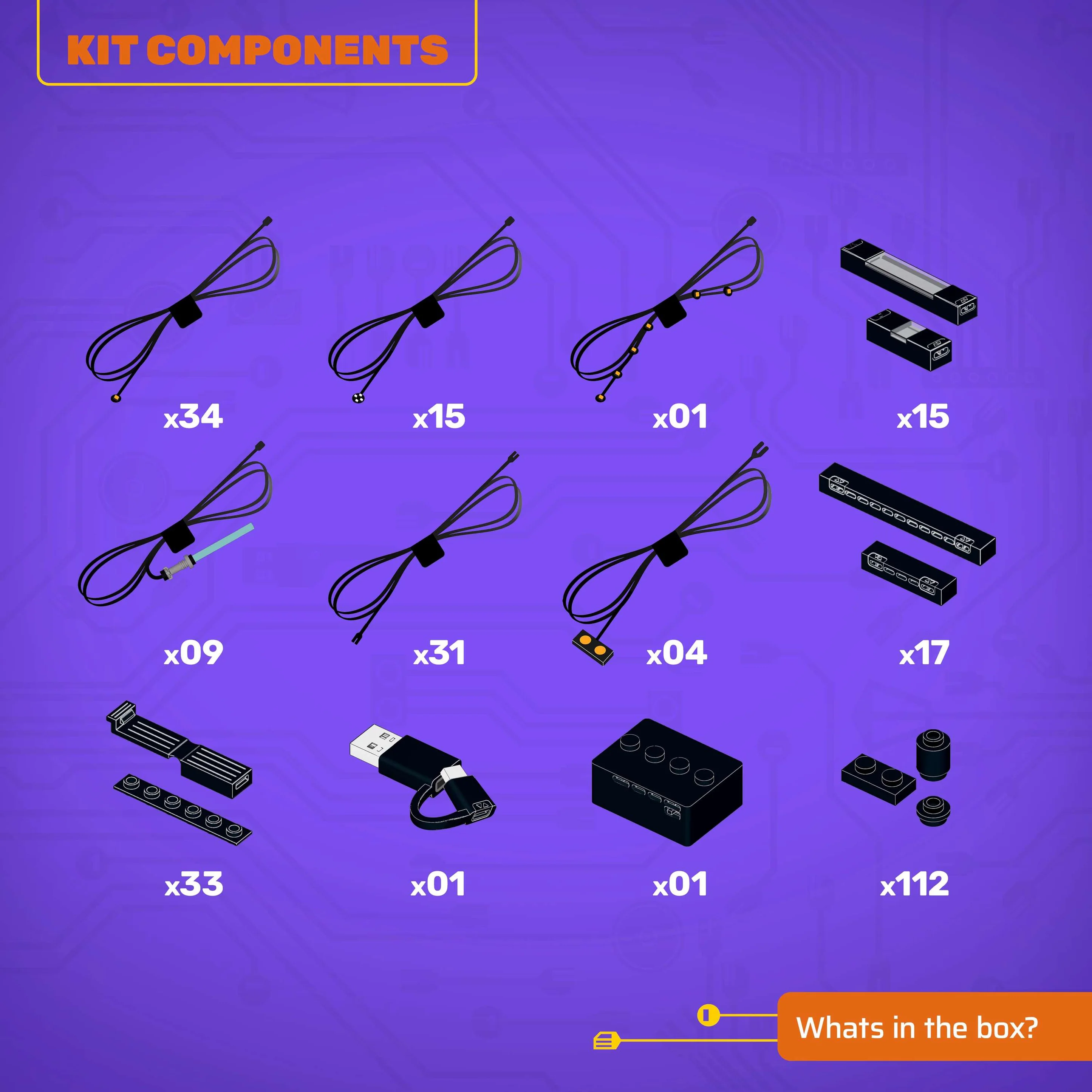 - All component casing and housing has been designed to connect seamlessly onto the LEGO stud system, with LEGO dimensional parts.