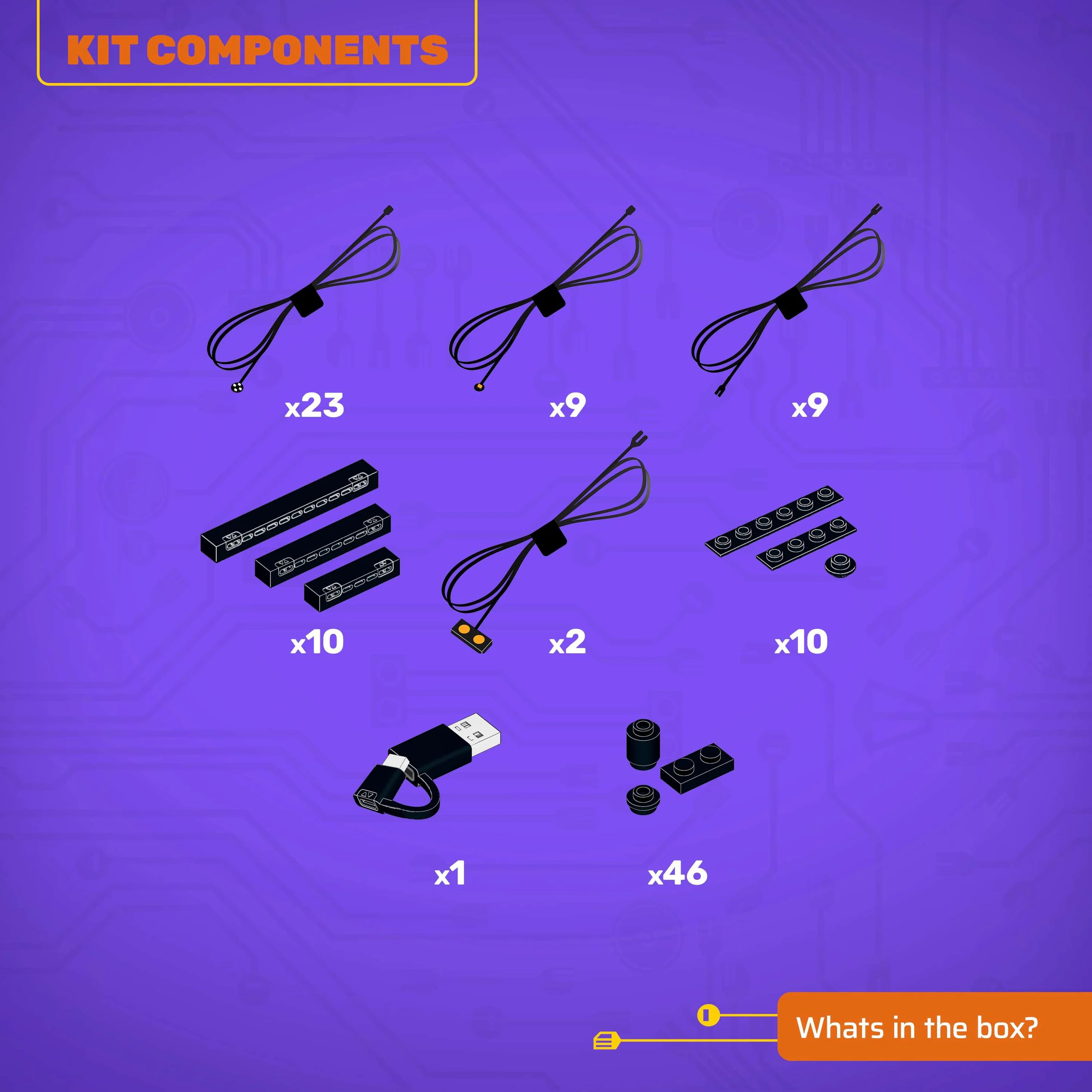 - All component casing and housing has been designed to connect seamlessly onto the LEGO stud system, with LEGO dimensional parts.