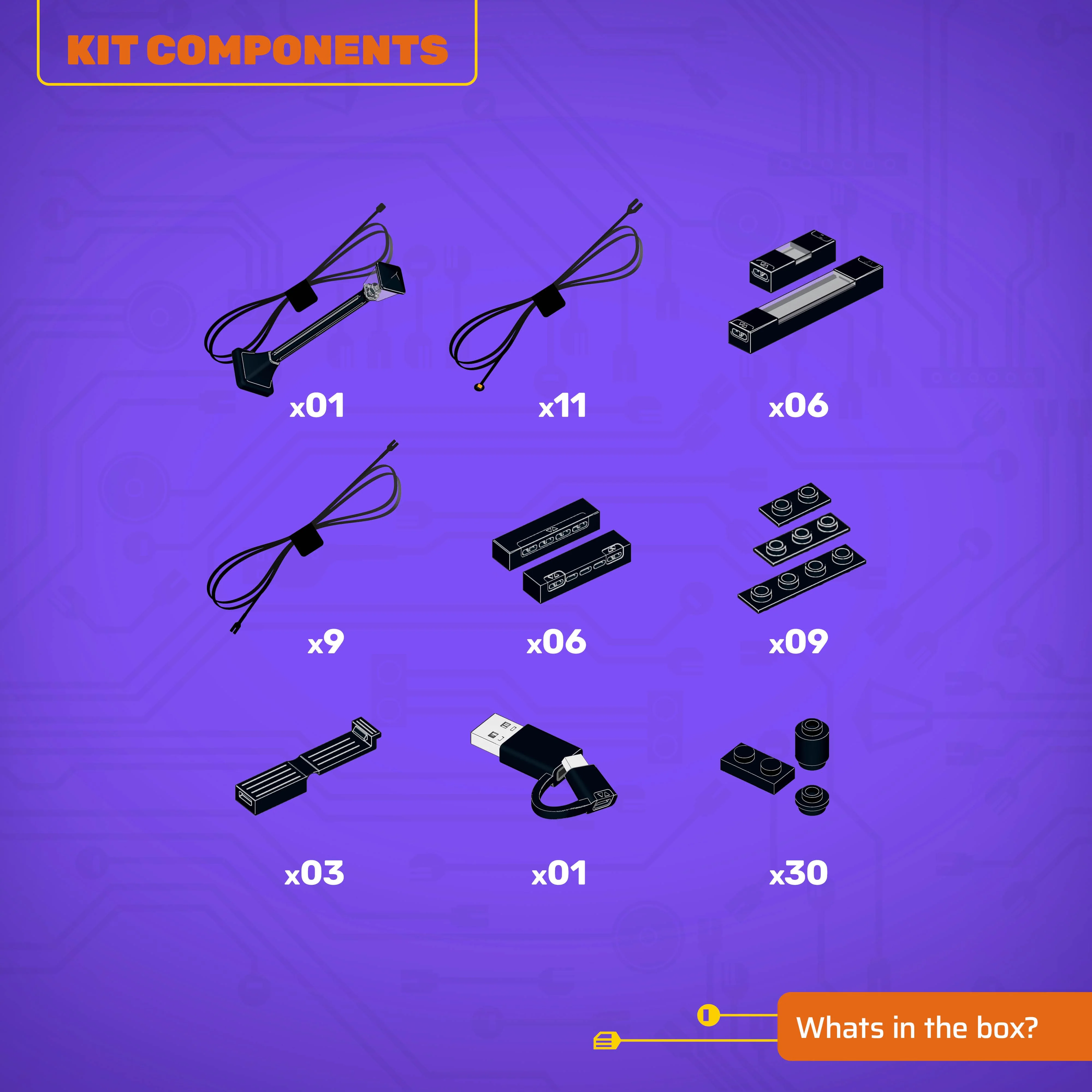 - All component casing and housing has been designed to connect seamlessly onto the LEGO stud system, with LEGO dimensional parts.