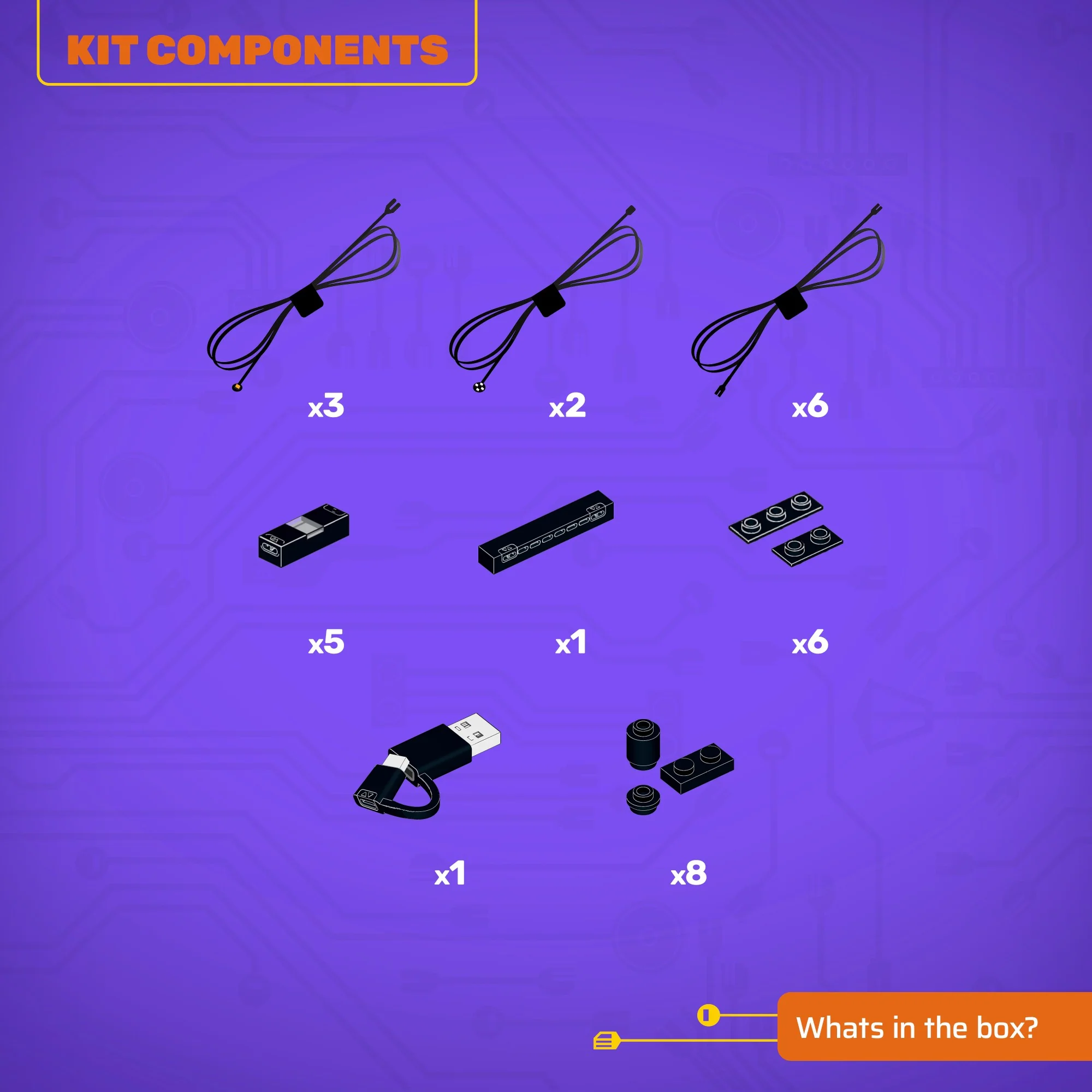 - All component casing and housing has been designed to connect seamlessly onto the LEGO stud system, with LEGO dimensional parts.