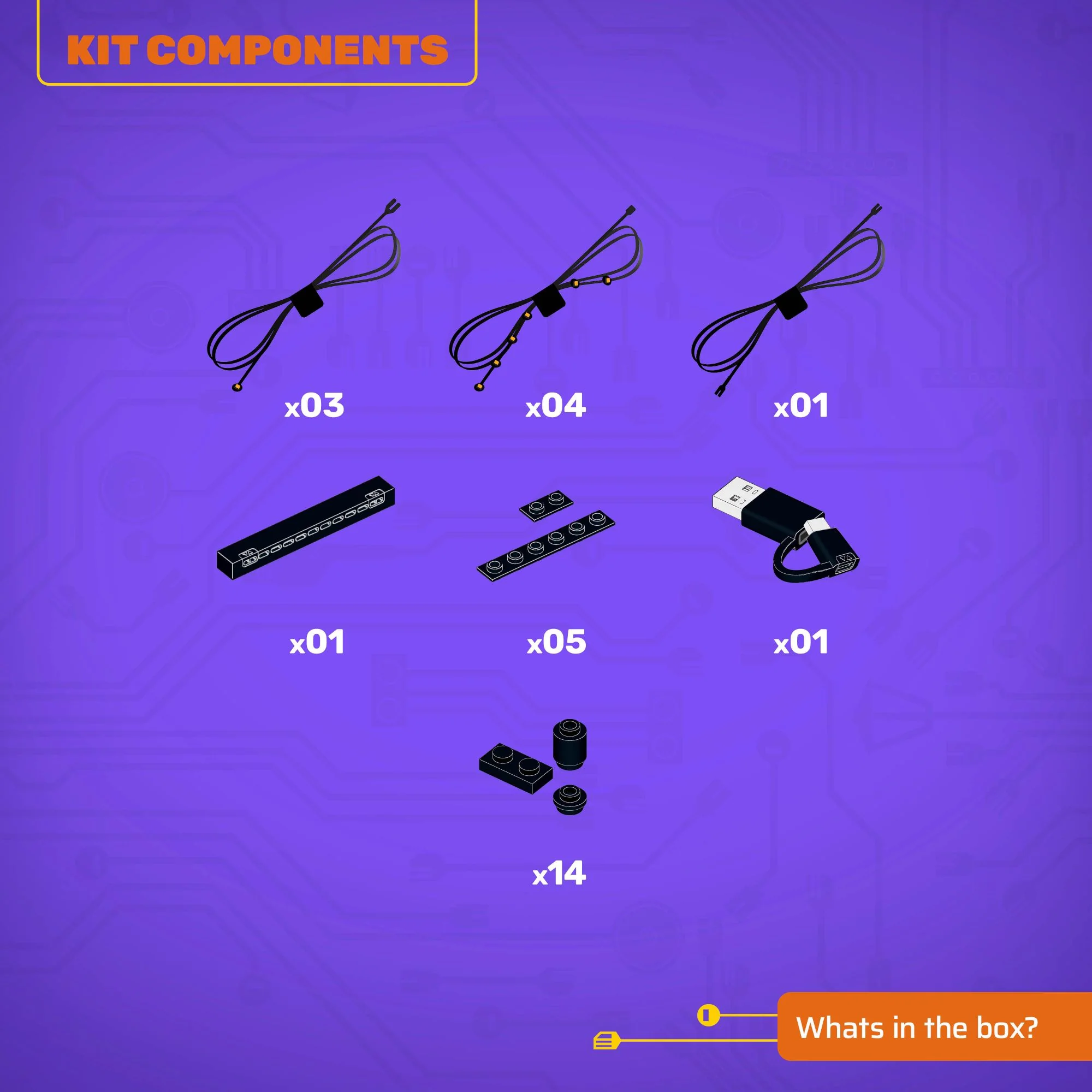- All component casing and housing has been designed to connect seamlessly onto the LEGO stud system, with LEGO dimensional parts.