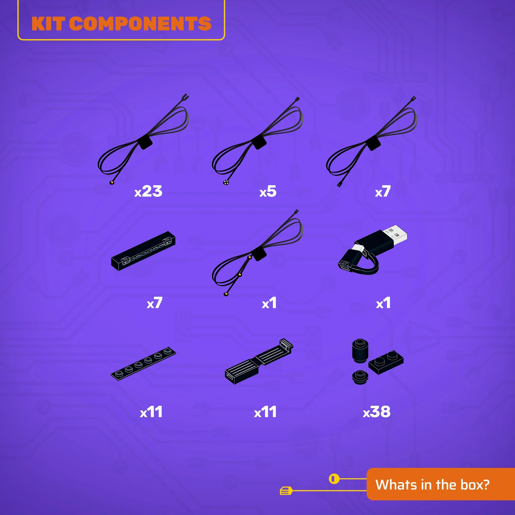 - All component casing and housing has been designed to connect seamlessly onto the LEGO stud system, with LEGO dimensional parts.