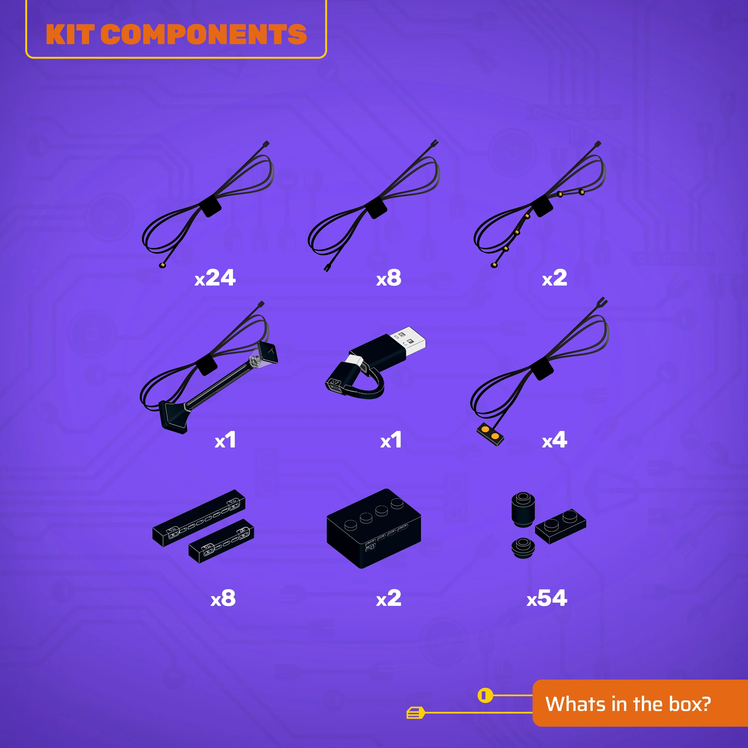 - All component casing and housing has been designed to connect seamlessly onto the LEGO stud system, with LEGO dimensional parts.