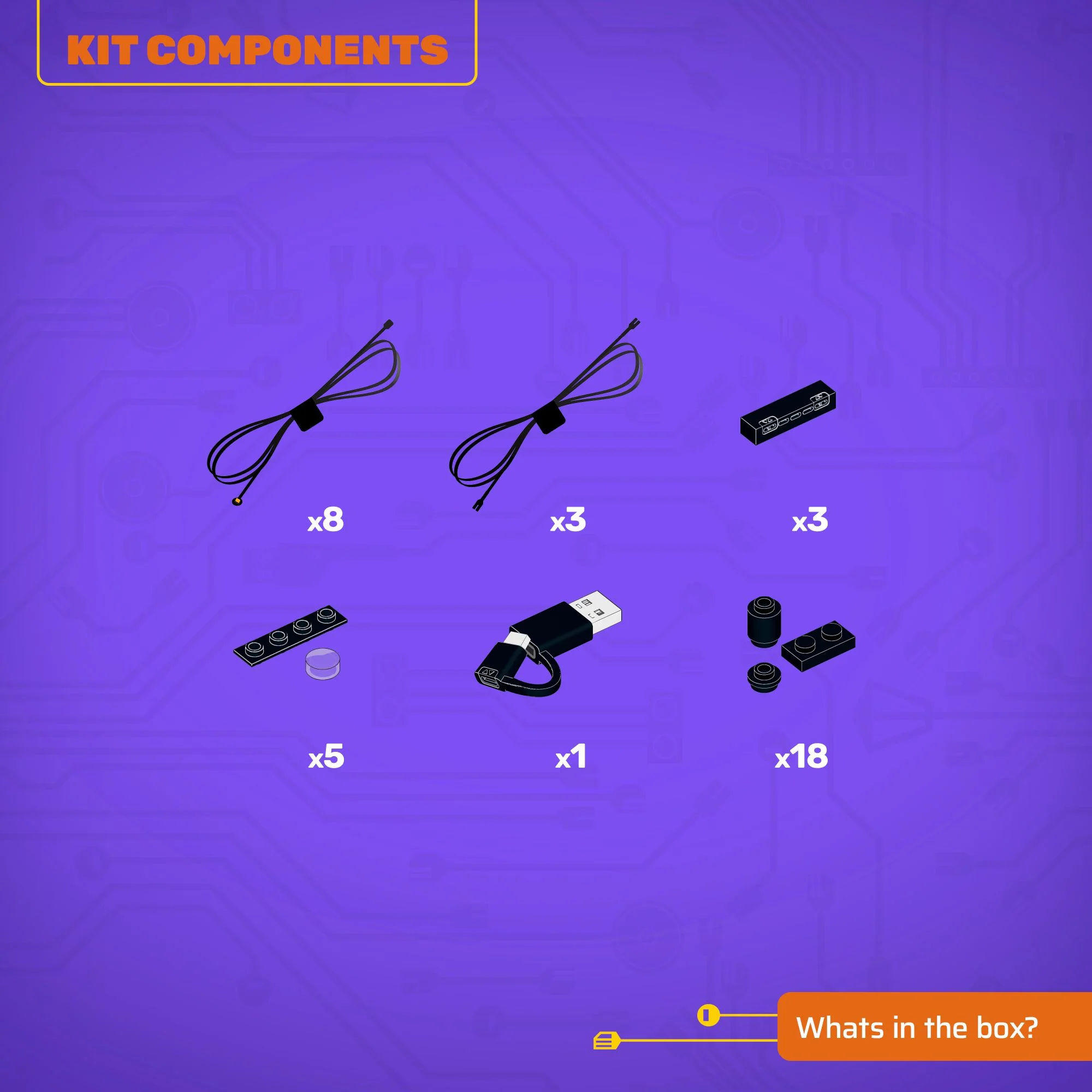 - All component casing and housing has been designed to connect seamlessly onto the LEGO stud system, with LEGO dimensional parts.